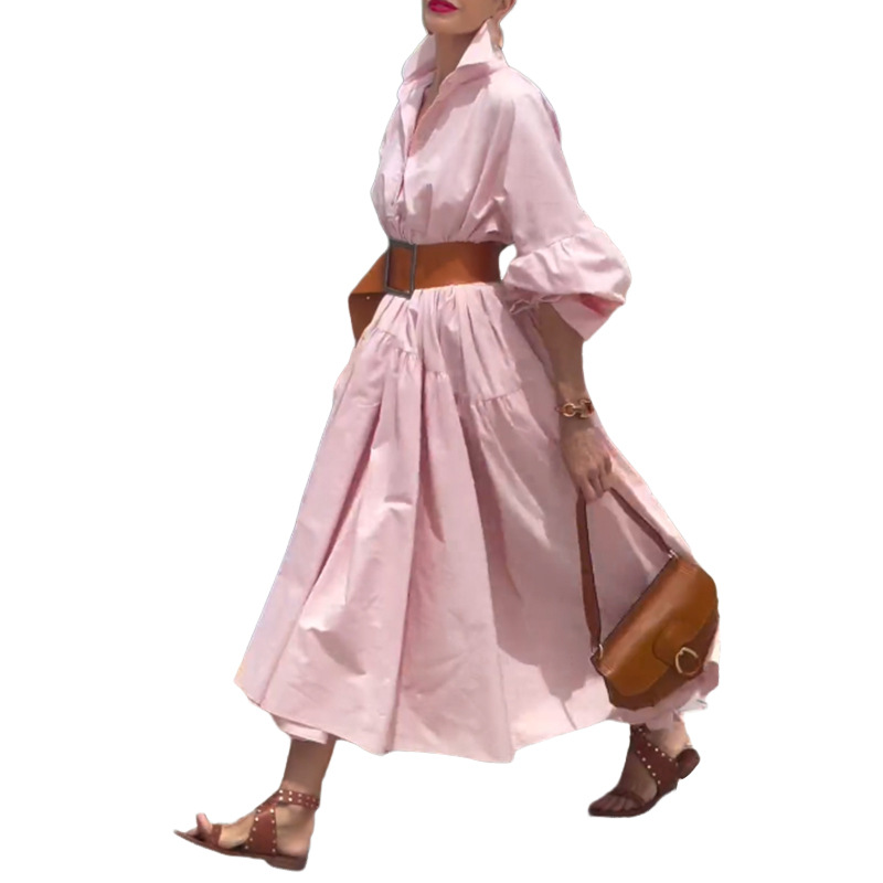 | nameOriginal | FD1727 2024 spring and summer new cross-border women's fashion temperament solid color large swing waist lapel shirt dress |