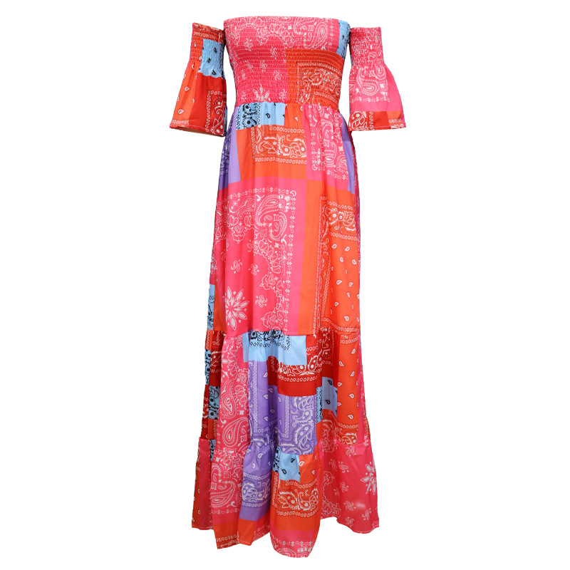 | nameOriginal | FD208 Spot Fashion Women's 2022 Summer Amazon Multicolor Strapless Waist Printed Dress |