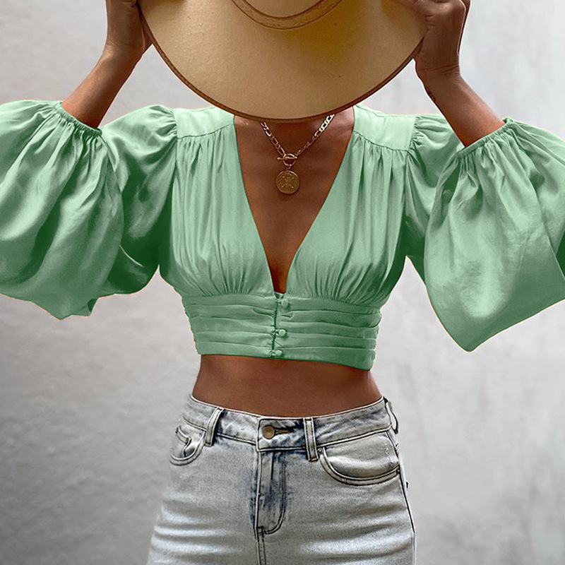 | nameOriginal | FD423 spot 2024 autumn new cross-border women's fashion deep V long sleeve solid color sexy short women's top |
