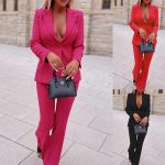 FD600 spot 2022 autumn and winter European and American fashion suit Women’s Business coat solid color casual pants two-piece set
