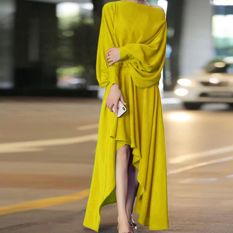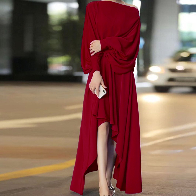 | nameOriginal | FD637 spot 2024 autumn and winter fashion women's solid color temperament socialite creative irregular dress |