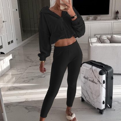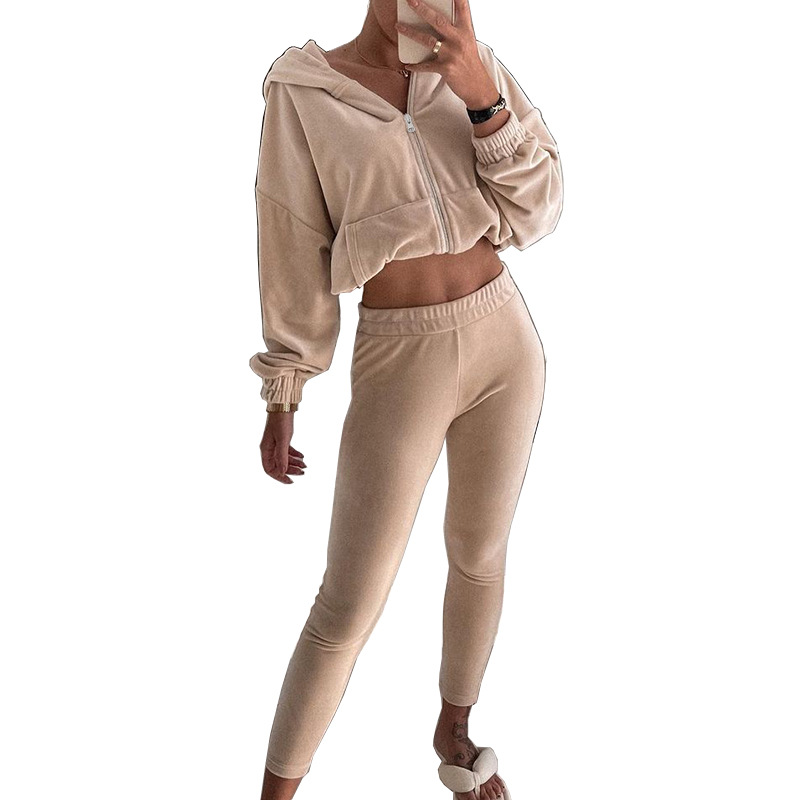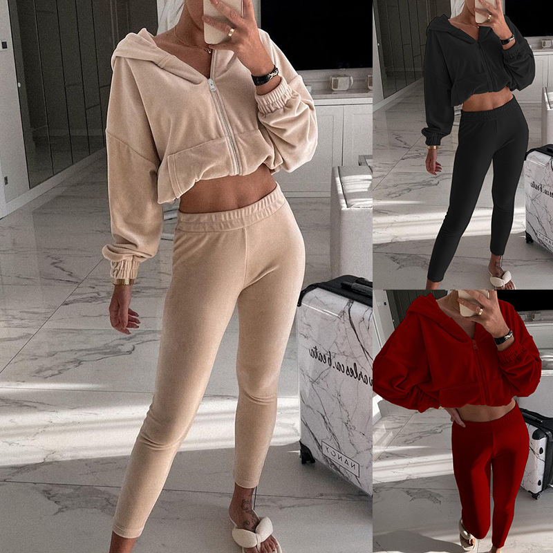 FD688 in stock 2023 autumn and winter new solid color loose hooded sweater Korean velvet sports pants suit two-piece set