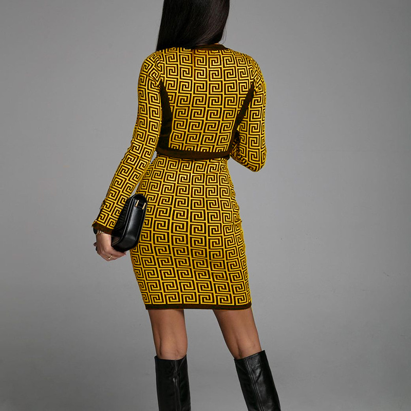 | nameOriginal | FD758 spot 2022 women's winter fashion temperament retro slim contrast cardigan printed dress |