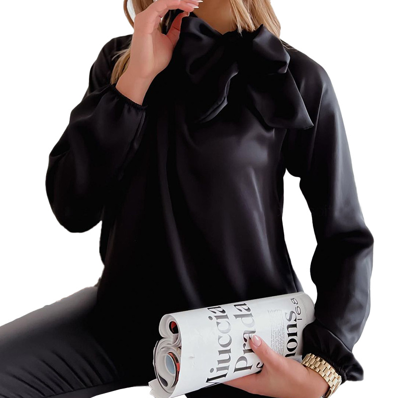 | nameOriginal | FD767 spot 2024 spring European and American women's turtleneck bow loose high elastic satin versatile base shirt top |