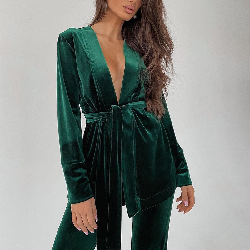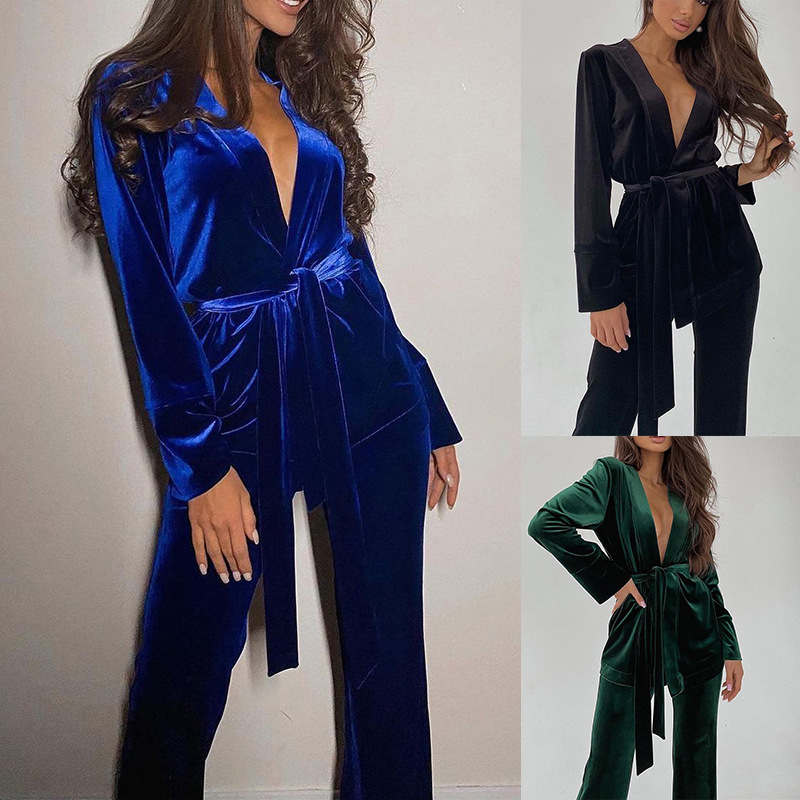 | nameOriginal | FD795 in stock 2023 Cross-border Women's Autumn and Winter New Fashion Casual Loose Top Trousers Golden Velvet suit |