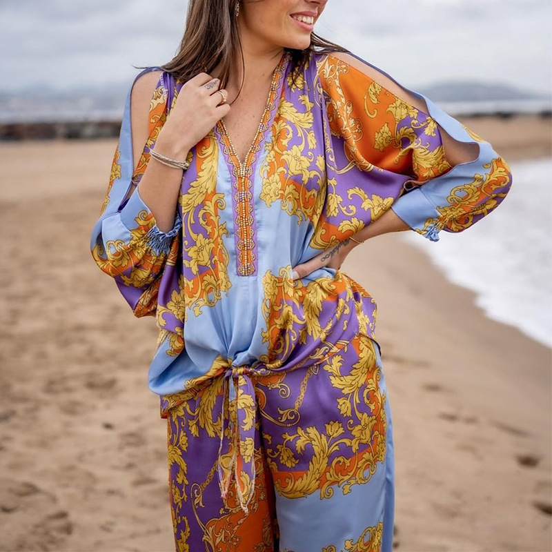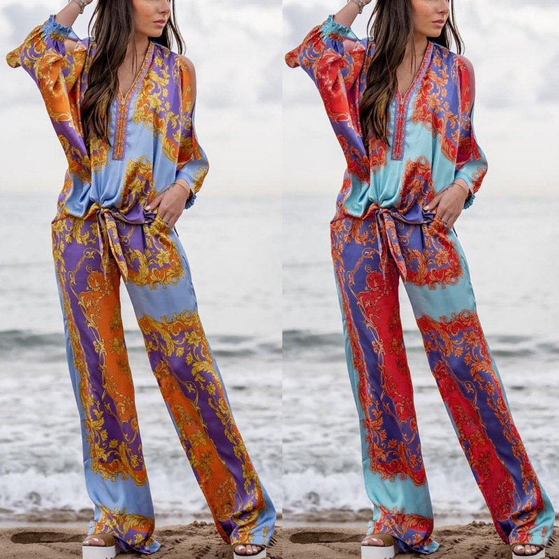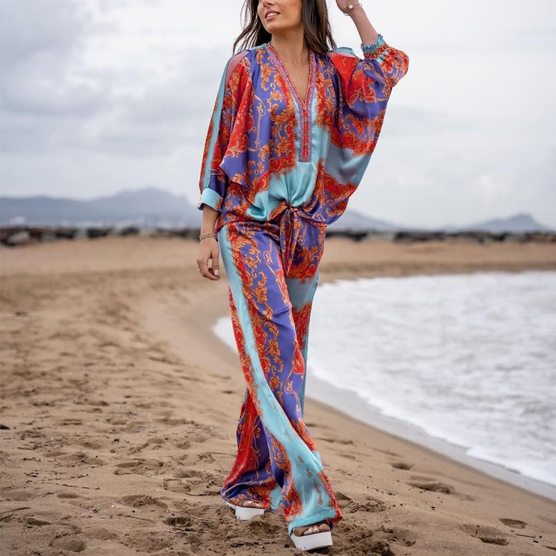 | nameOriginal | FD896 Spot 2024 Spring and Summer European and American Women's Bohemian Printed Long Sleeve Top Casual Straight Pants Set |