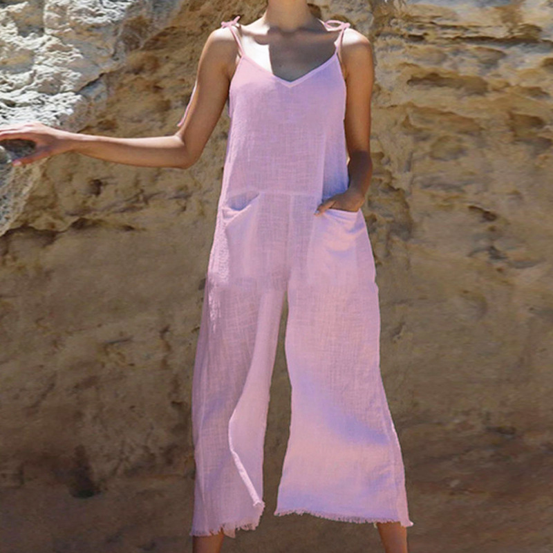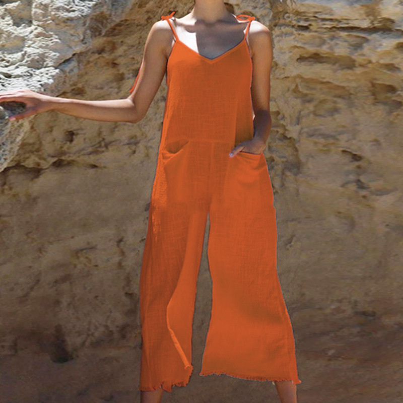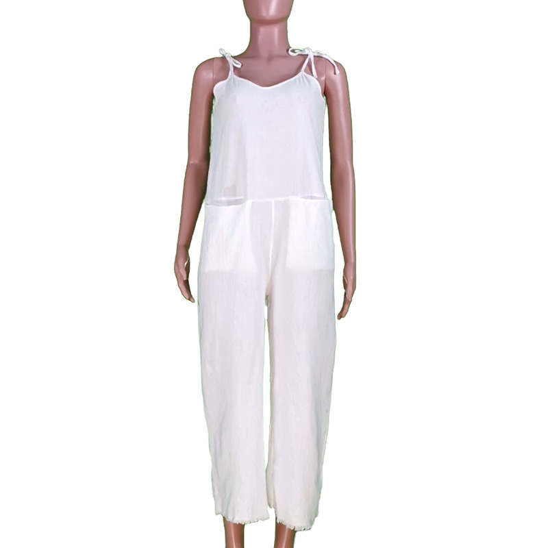 | nameOriginal | FD905 Spot 2024 Cross-border Women's Summer New Fashion Solid Color Sexy Sling Cotton Linen Long Jumpsuit |