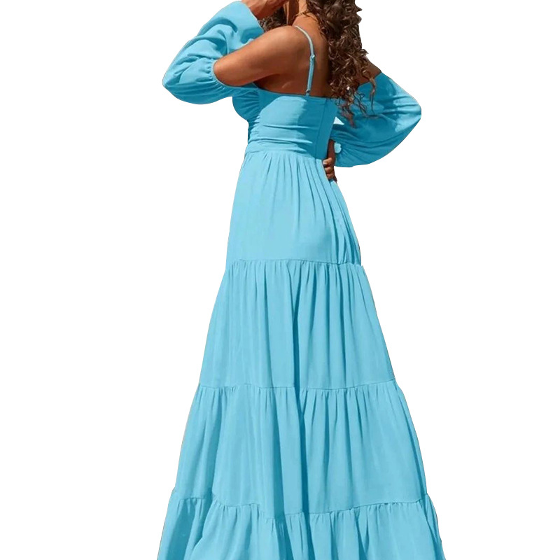 FD984 in stock 2022 autumn new women's fashion sexy solid color long sleeve mid-length sling dress