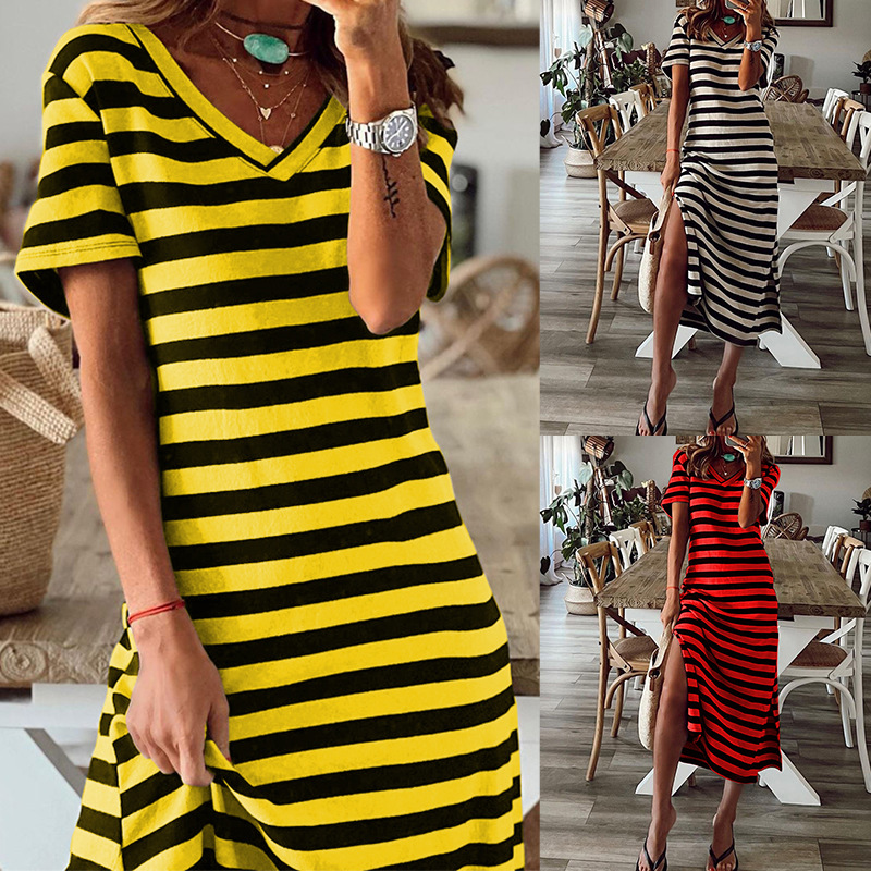 | nameOriginal | FD990 spot cross-border Amazon 2022 summer new women's loose short sleeve striped straight dress |