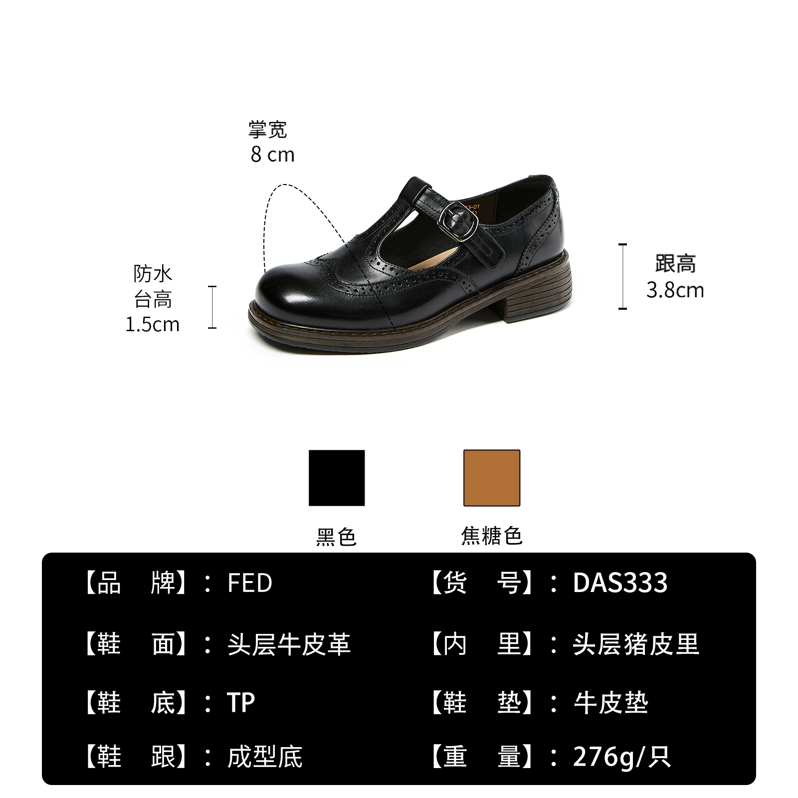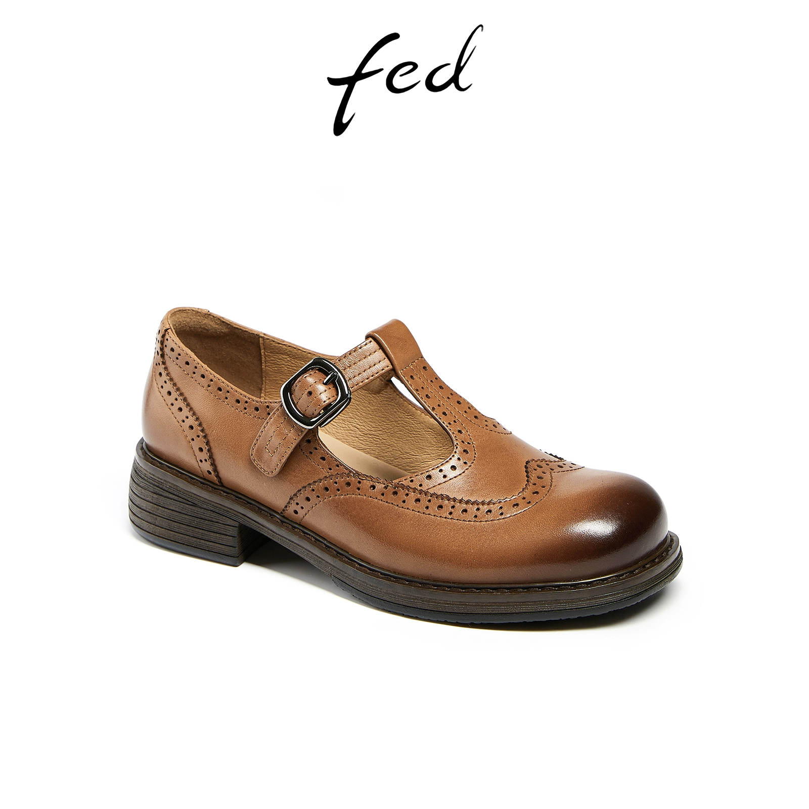 | nameOriginal | Fed thick heel spring brogue leather Mary Jane shoes |