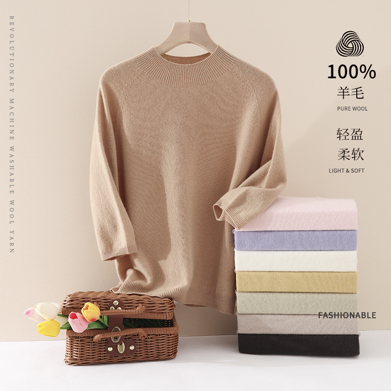 Feel Great ~ Gentle Loose Joker Half-high Collar Knitted Sweater First-line Readymade New Color 100 Full Wool Sweater for Women