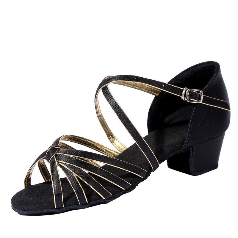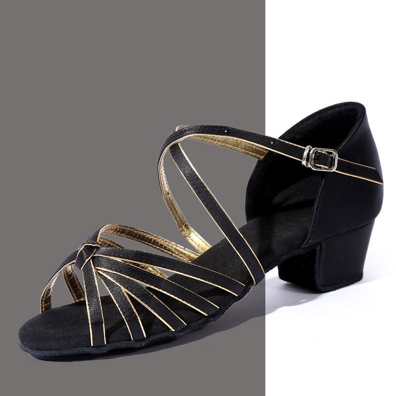| nameOriginal | Female beginners practice shoes, cha-cha dance, new adult children soft bottom 35 points with black gold black red |