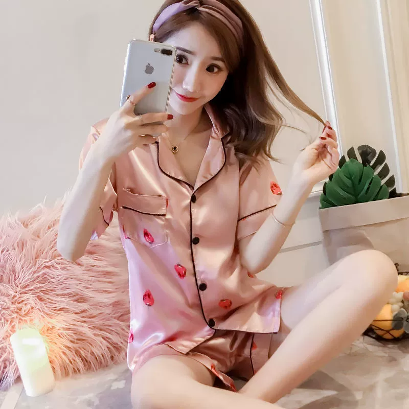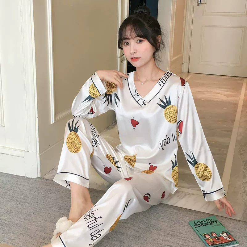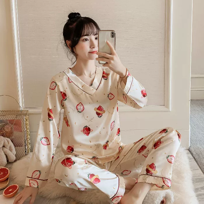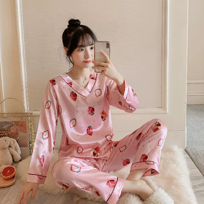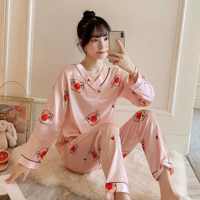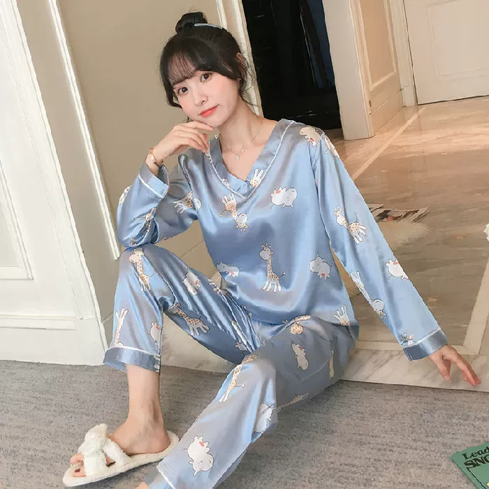 Female Cartoon Cute Korean Style Student Simulated Silk Pajamas