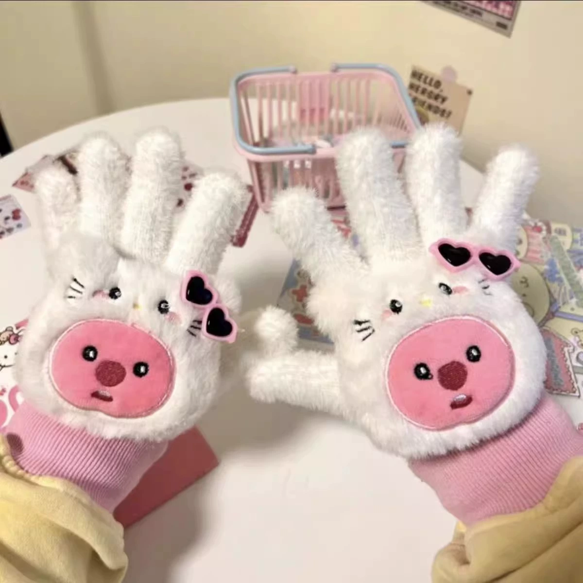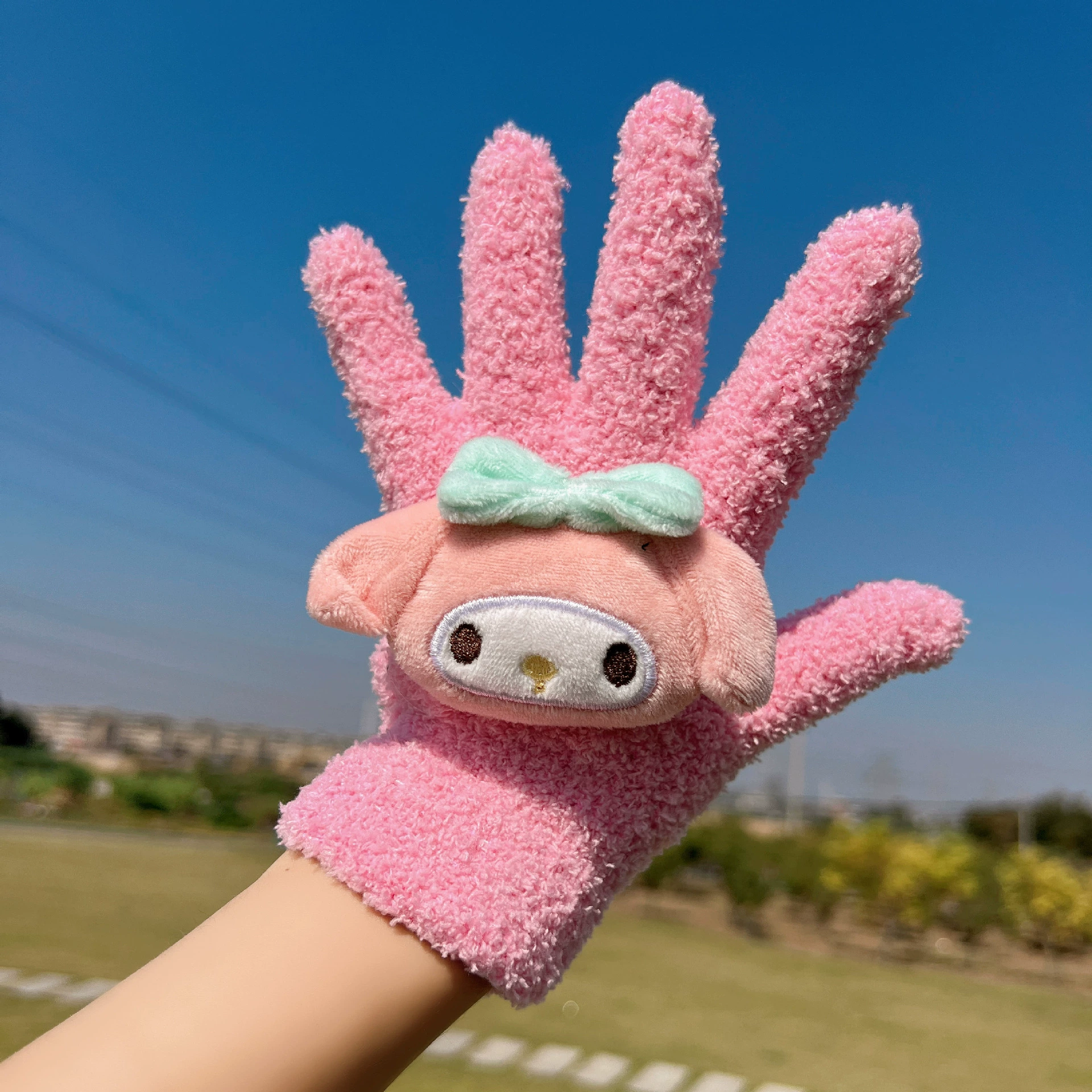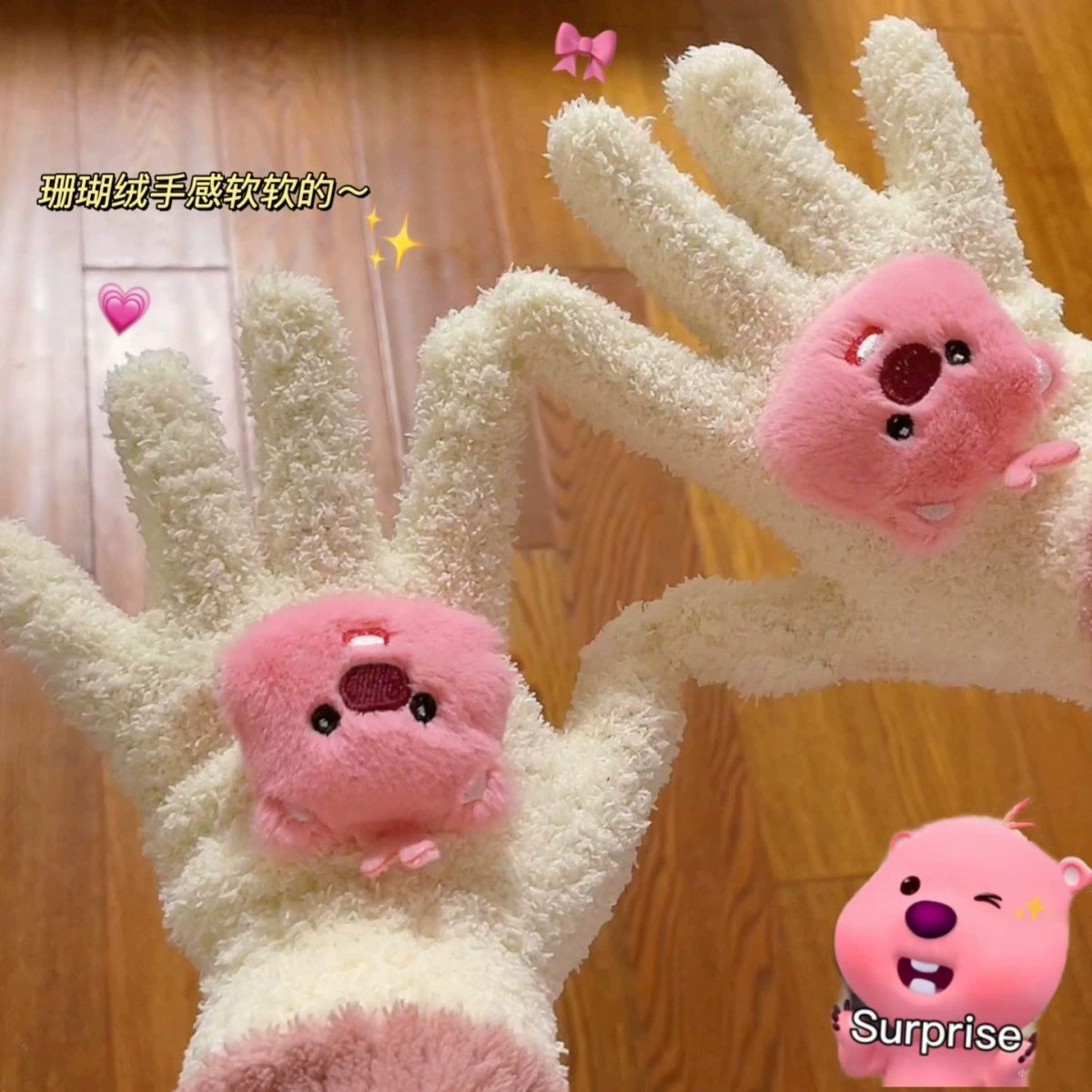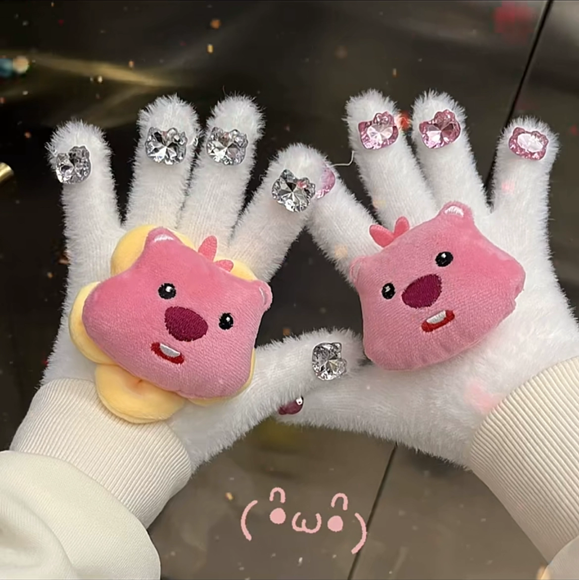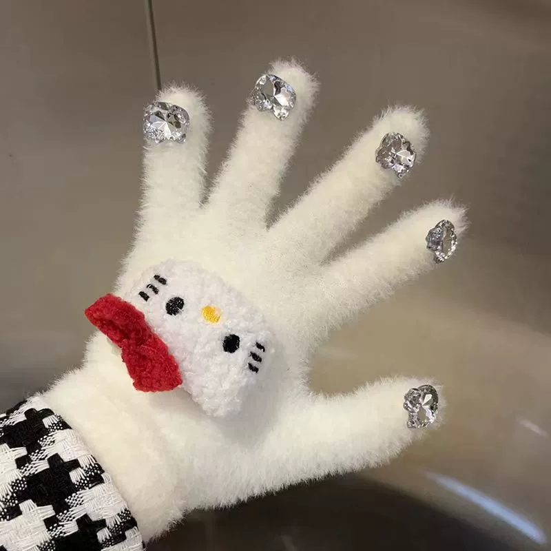 Female loopy cute plush student electric car gloves