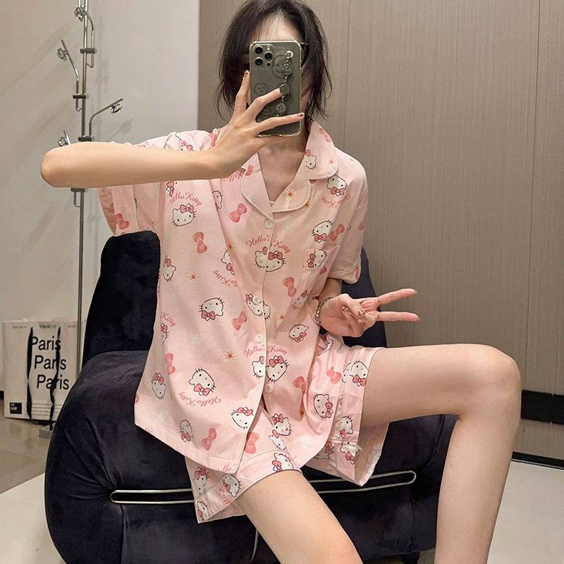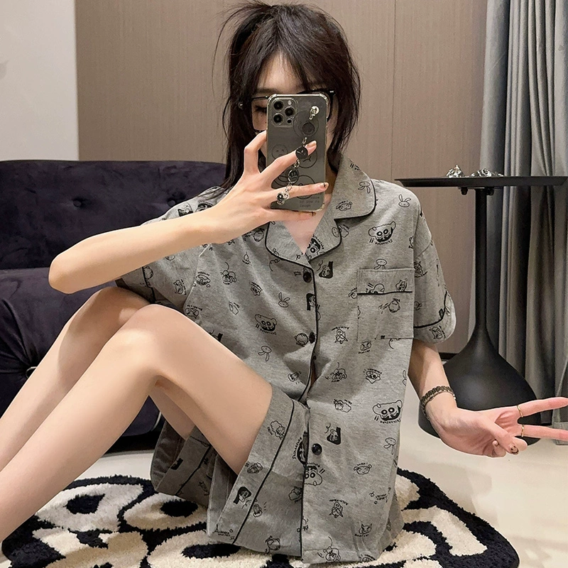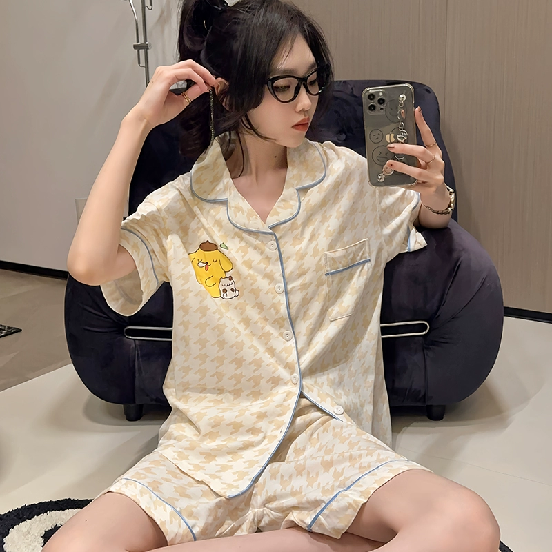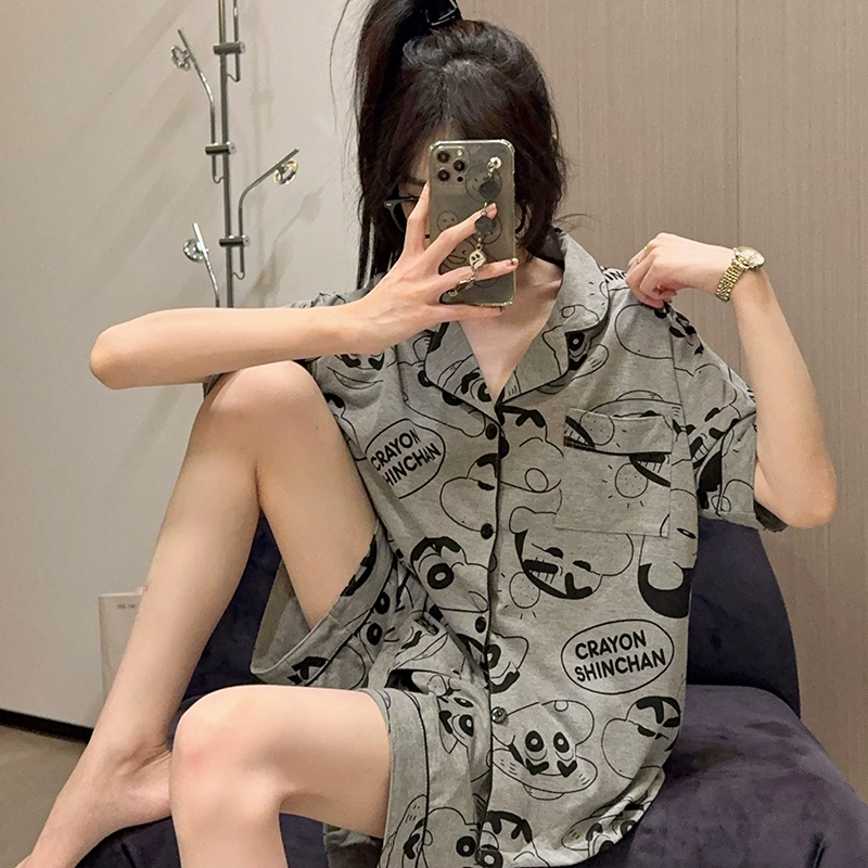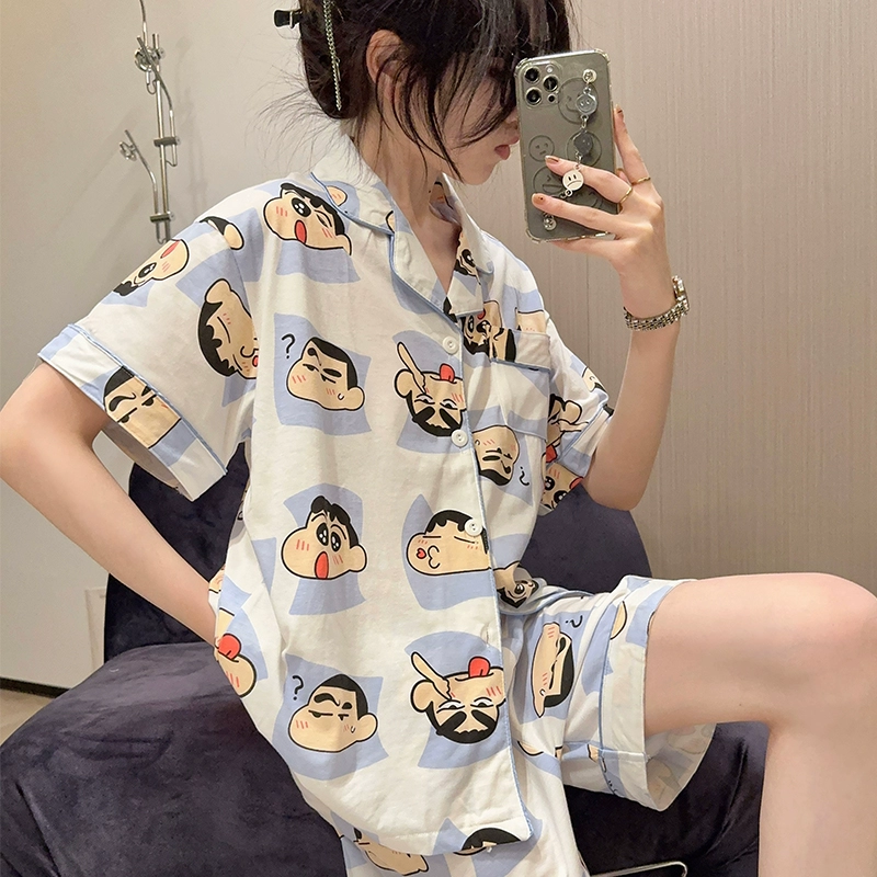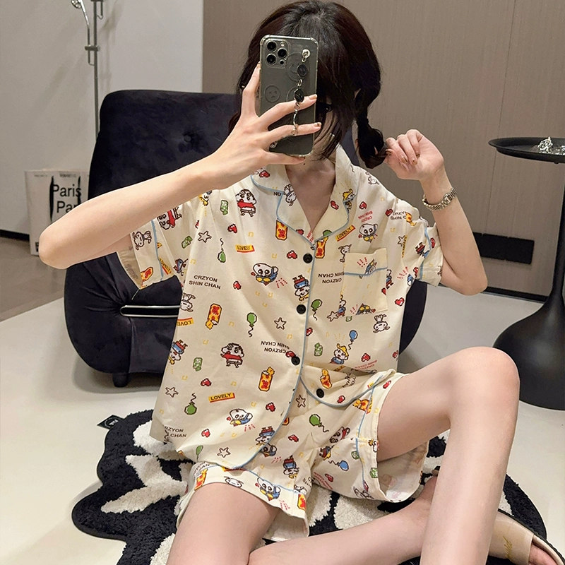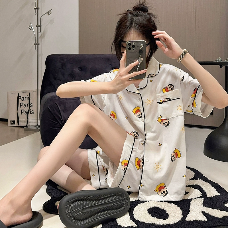 Female pure cotton cartoon cute casual student cardigan pajamas