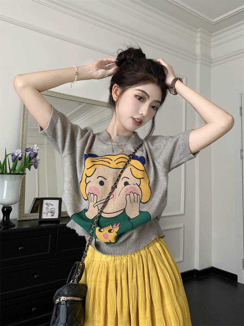 | nameOriginal | Female Summer Cute Short Sleeve Sweater Folded Cartoon |