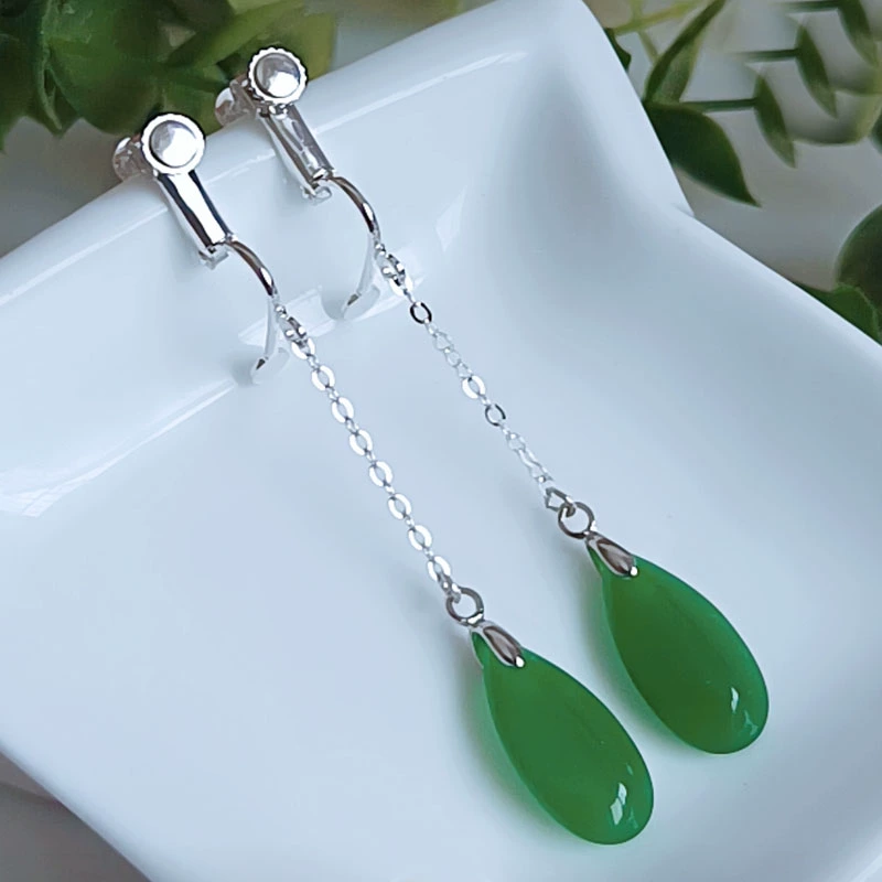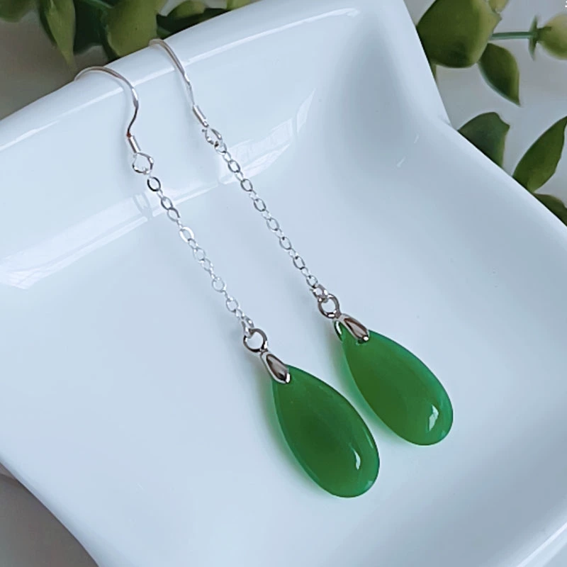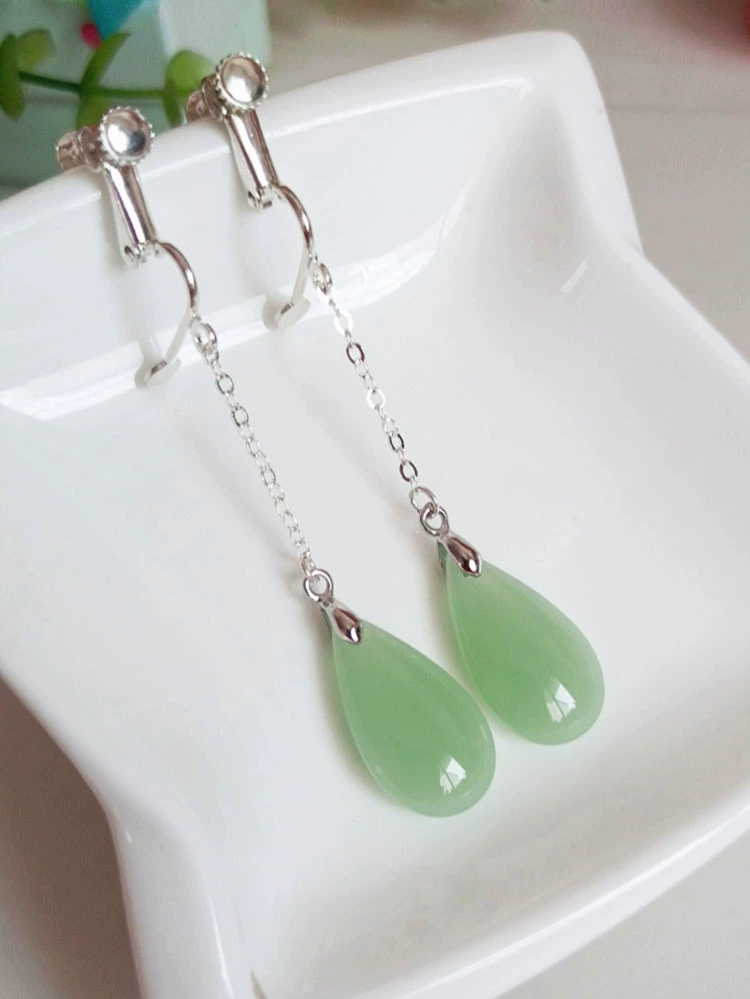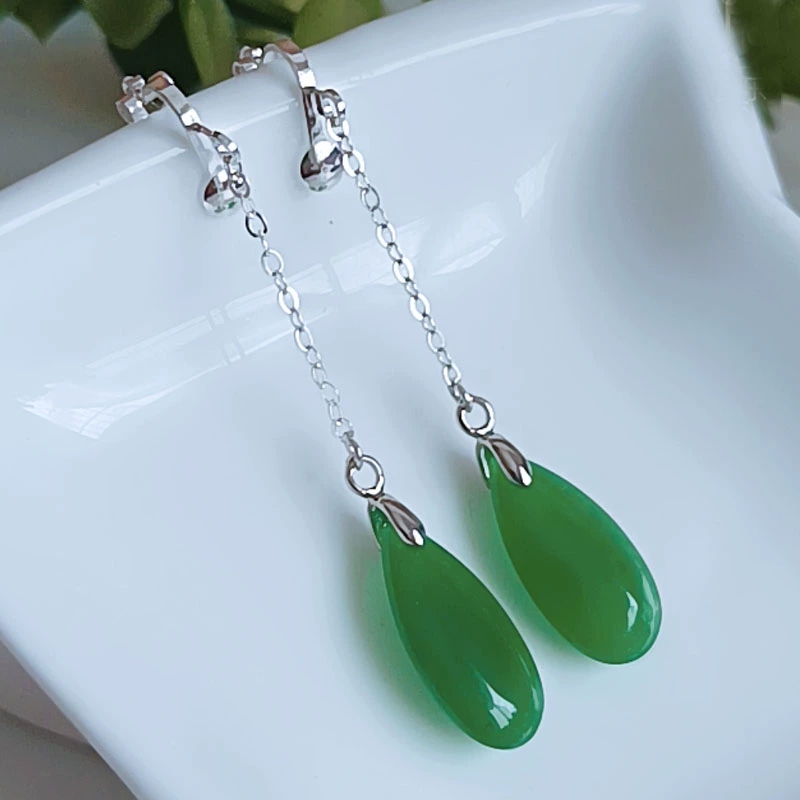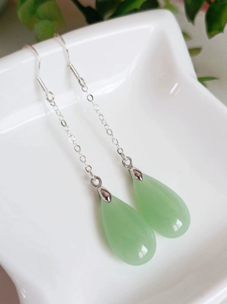 | nameOriginal | Feminine ladylike cheongsam sterling silver jade drop earrings |