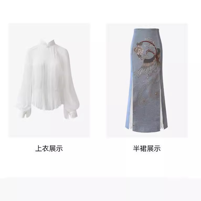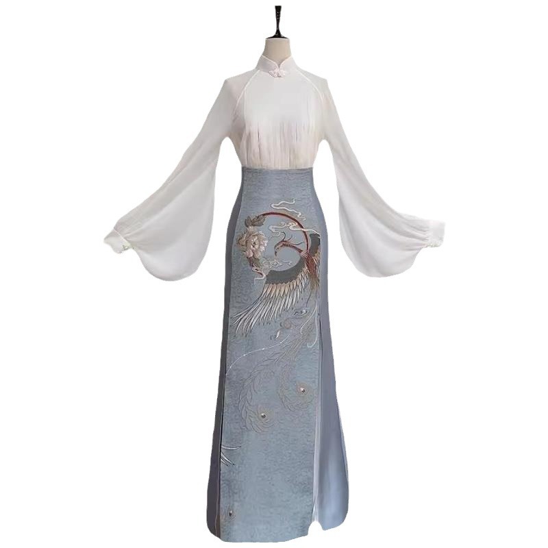 | nameOriginal | Feng Wearing Peony Ancient Style Hanfu Women's [Dream Back to Prosperity National Tide] White Jacket Cigarette Grey Blue Skirt Two-Piece Set |