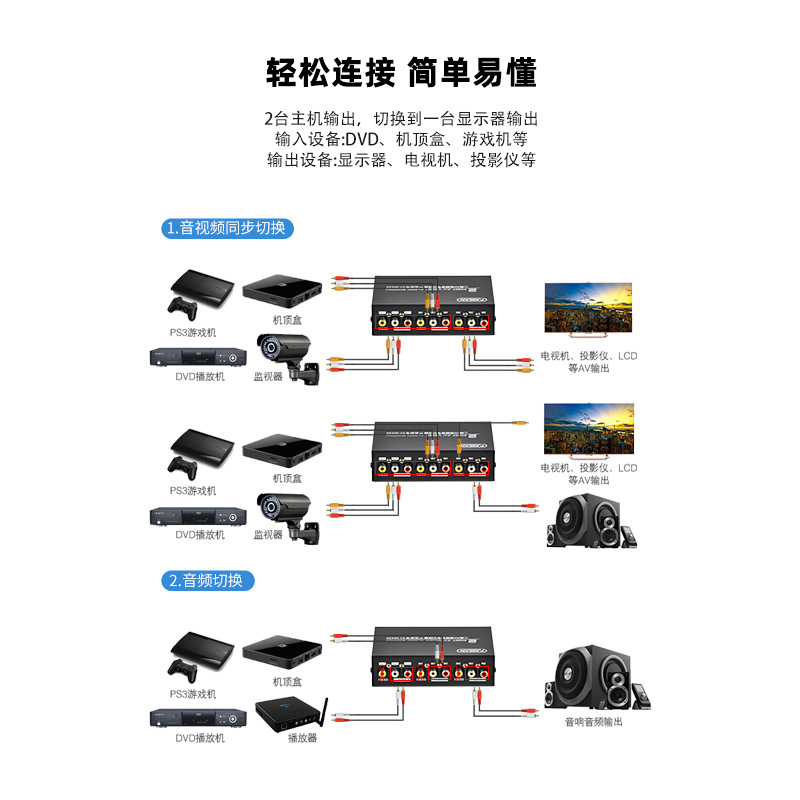 | nameOriginal | Fengjie AV Separator Two-port Lotus Head Audio Converter AV Sharing Switcher Two-in One-out AV Switcher |