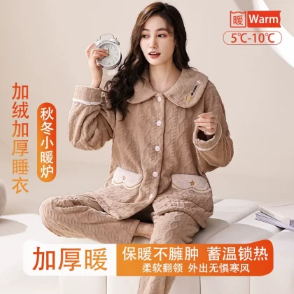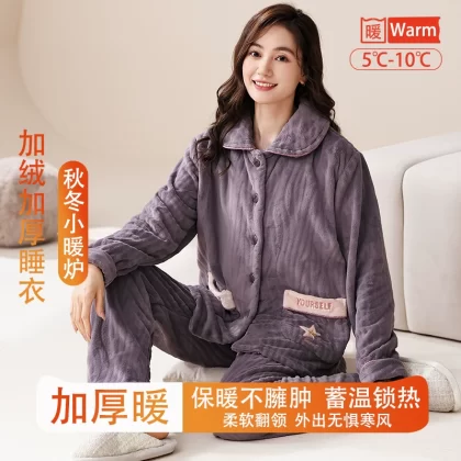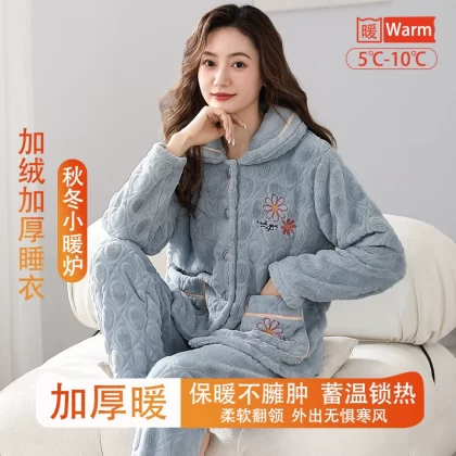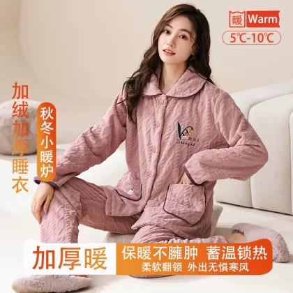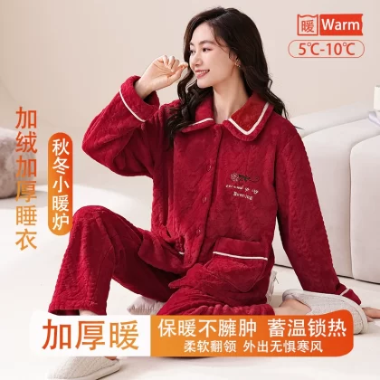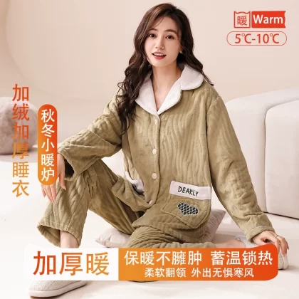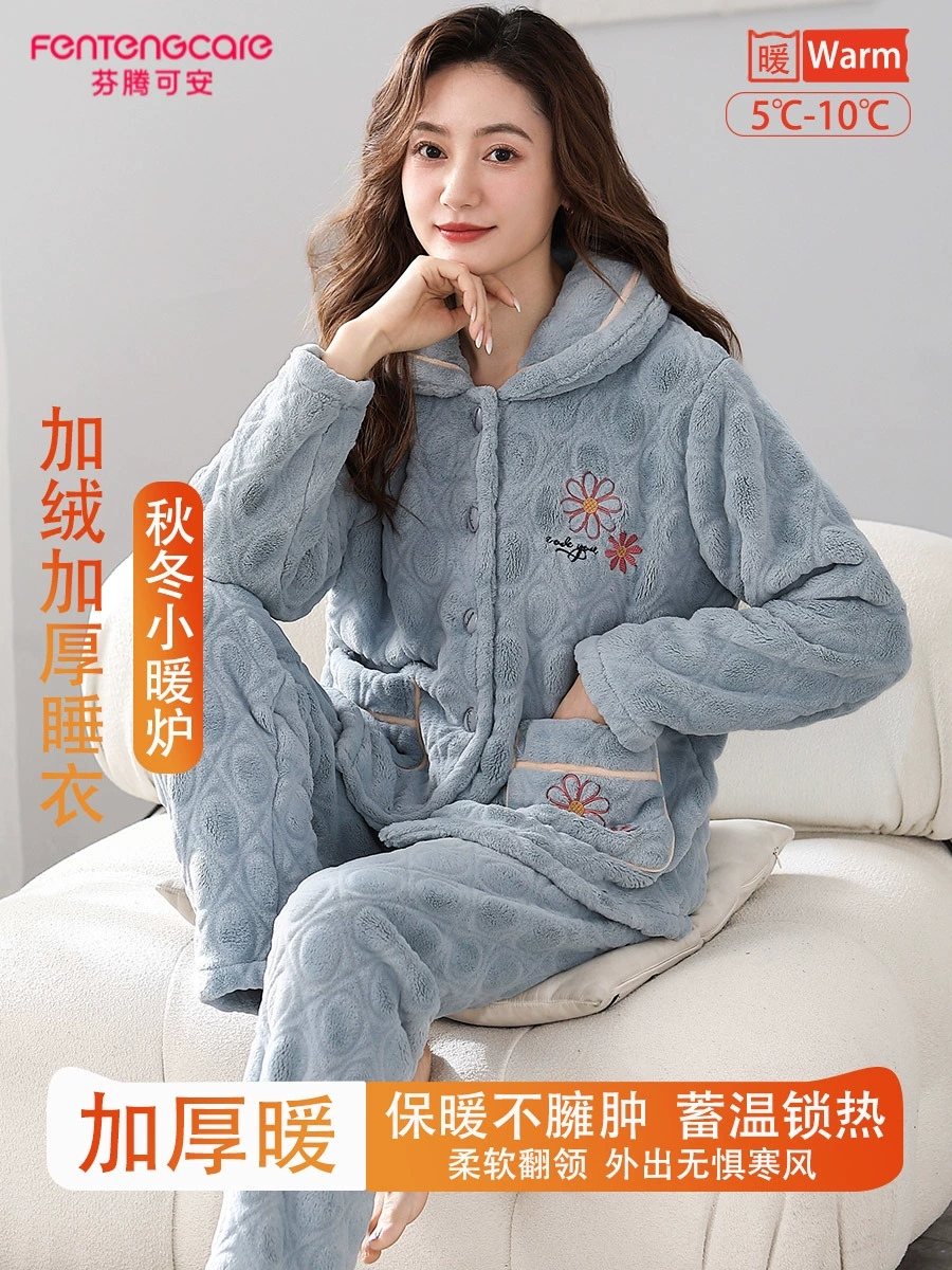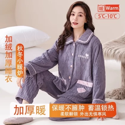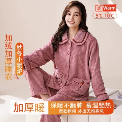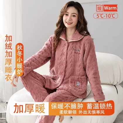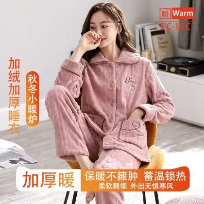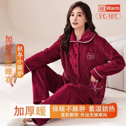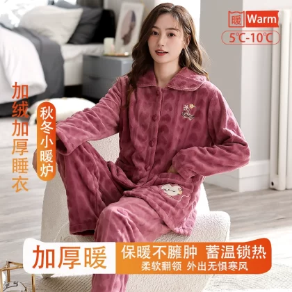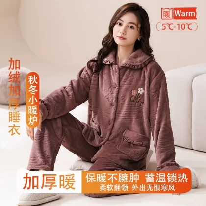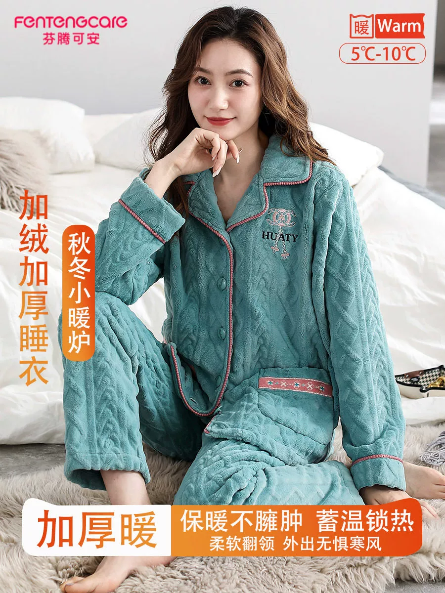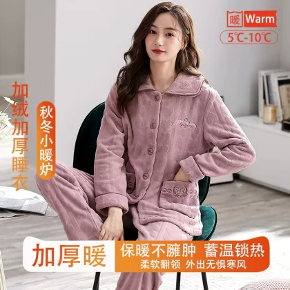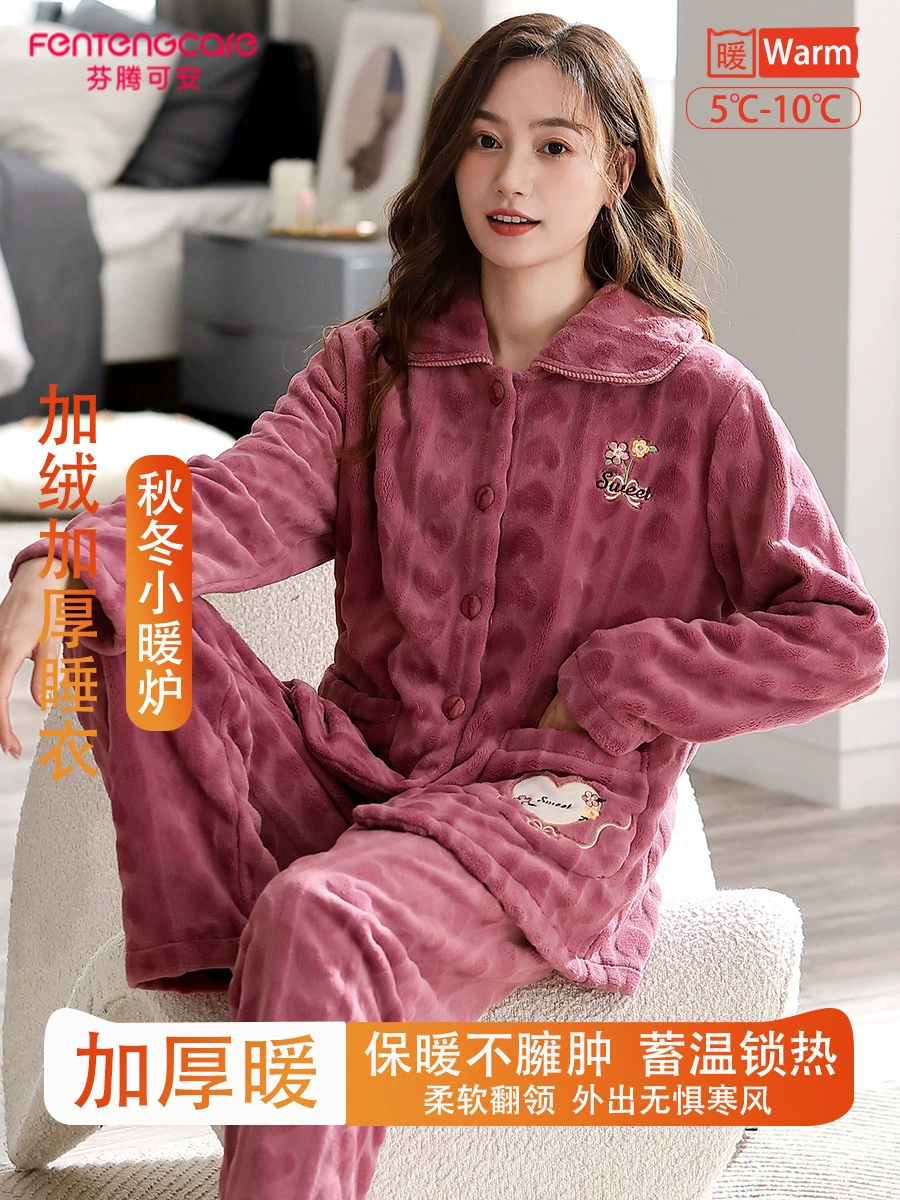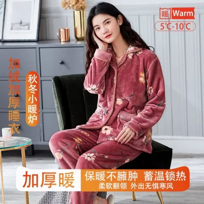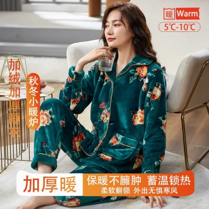 | nameOriginal | Fenton Kean autumn and winter coral velvet pajamas for women winter plus velvet thickened middle-aged mothers women's flannel home clothes |