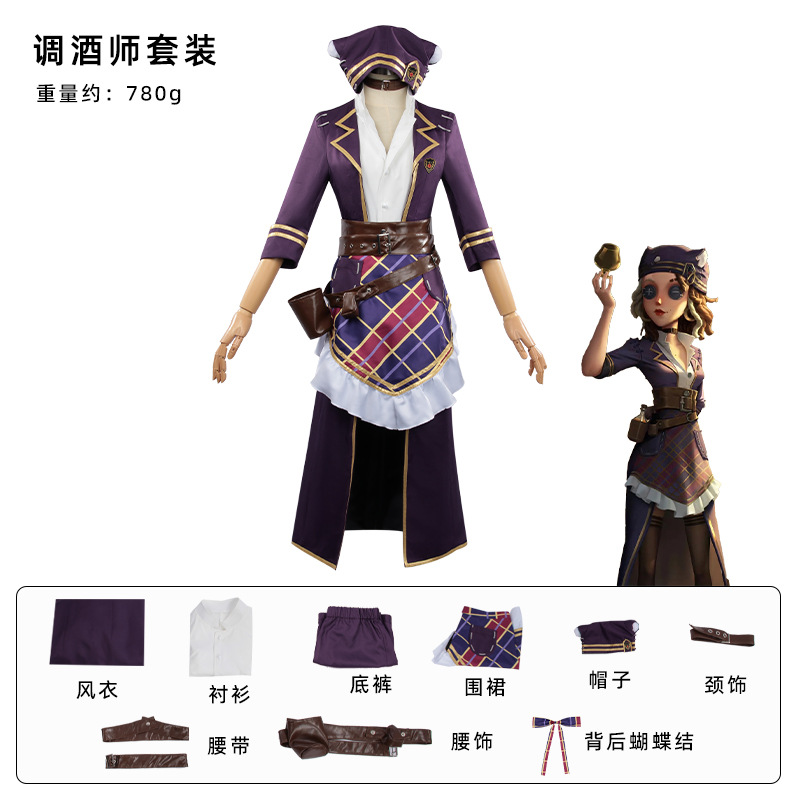 | nameOriginal | Fifth Personality Cos Suit Game Anime Character Bartender cosplay Ivory Tower Series Role Playing Suit |