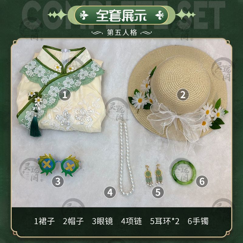 | nameOriginal | Fifth personality gardener early Qing cos clothing cheongsam West Lake linkage world fashion hat bag Cosplay suit female |