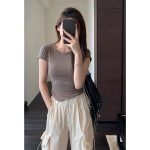 Figure Good Proportion Giant Foreign-style Small Short Slim-fit Slimming Base Short-sleeved T-shirt Women’s Summer New D0622X