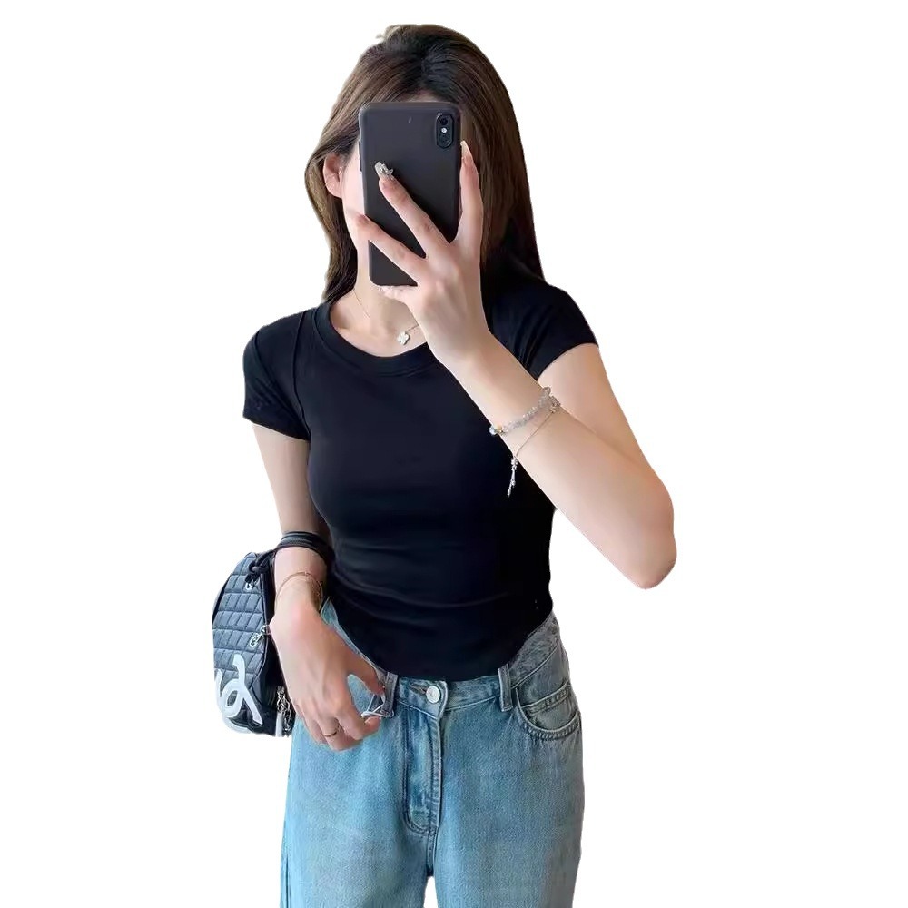 Figure Good Proportion Giant Foreign-style Small Short Slim-fit Slimming Base Short-sleeved T-shirt Women's Summer New D0622X
