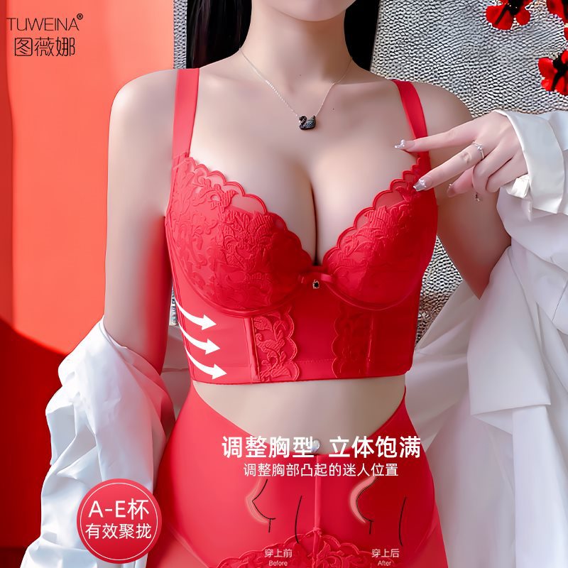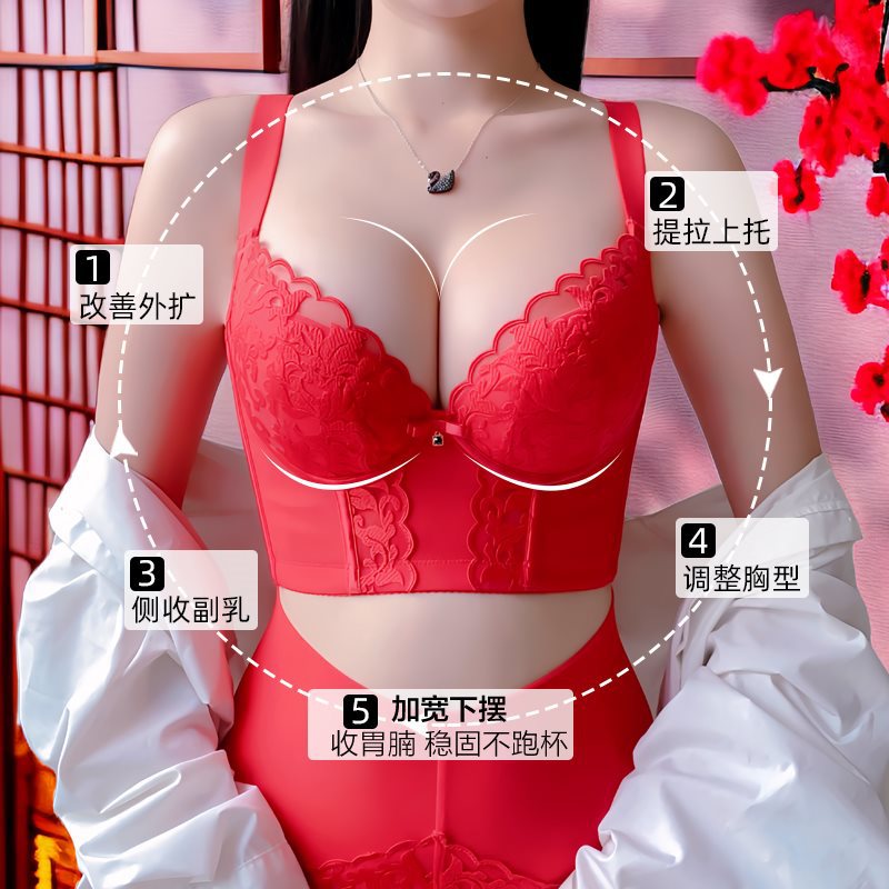 Figure Weena Adjustable Bra Red Neia Internet Popular Small Chest Large Size Gathering Side-closed Anti-sagging Bra