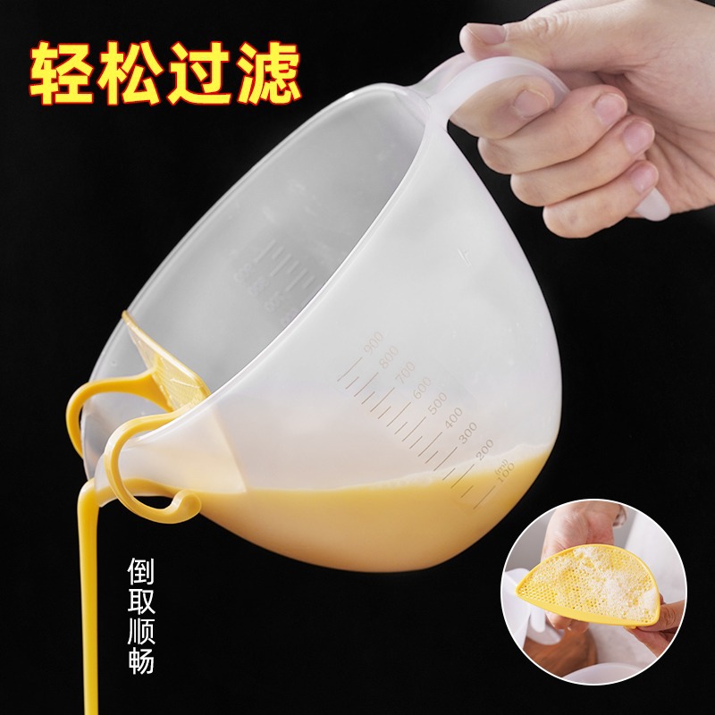 | nameOriginal | Filter measuring cup large capacity with scale egg liquid plastic egg beating cup egg baking with filter kitchen rice washing bowl |
