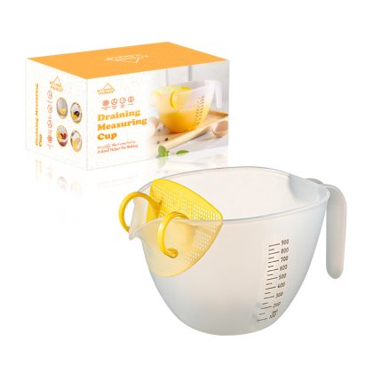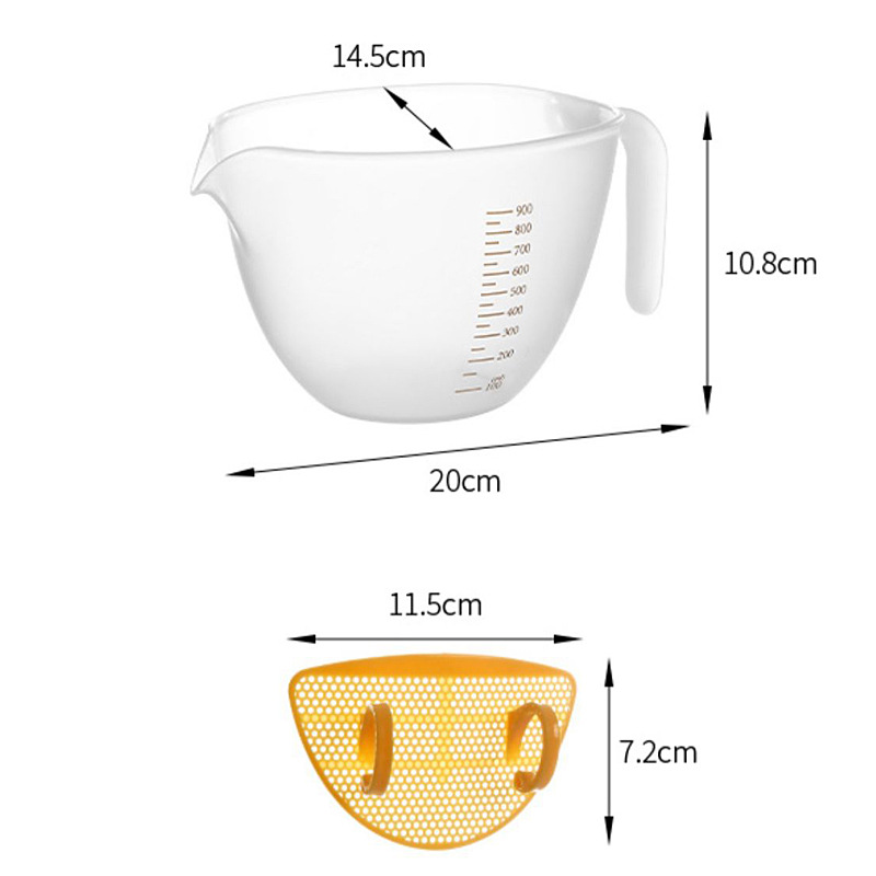 | nameOriginal | Filtering measuring cup with drainage nozzle egg liquid filtering bowl with scale egg beating bowl egg liquid removing tendons filtering egg foam mixing bowl |