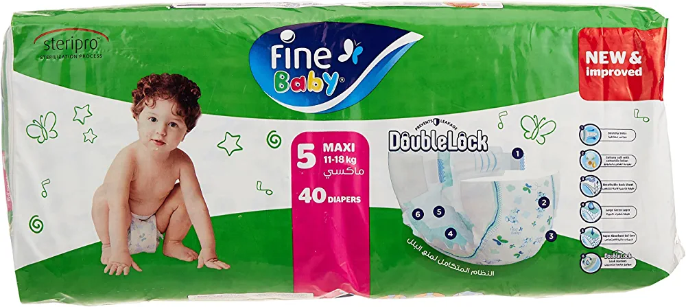 | nameOriginal | Fine Baby, Double Lock Diapers Size 5 Maxi 11-18kg, 44pcs, Pack of 1 |