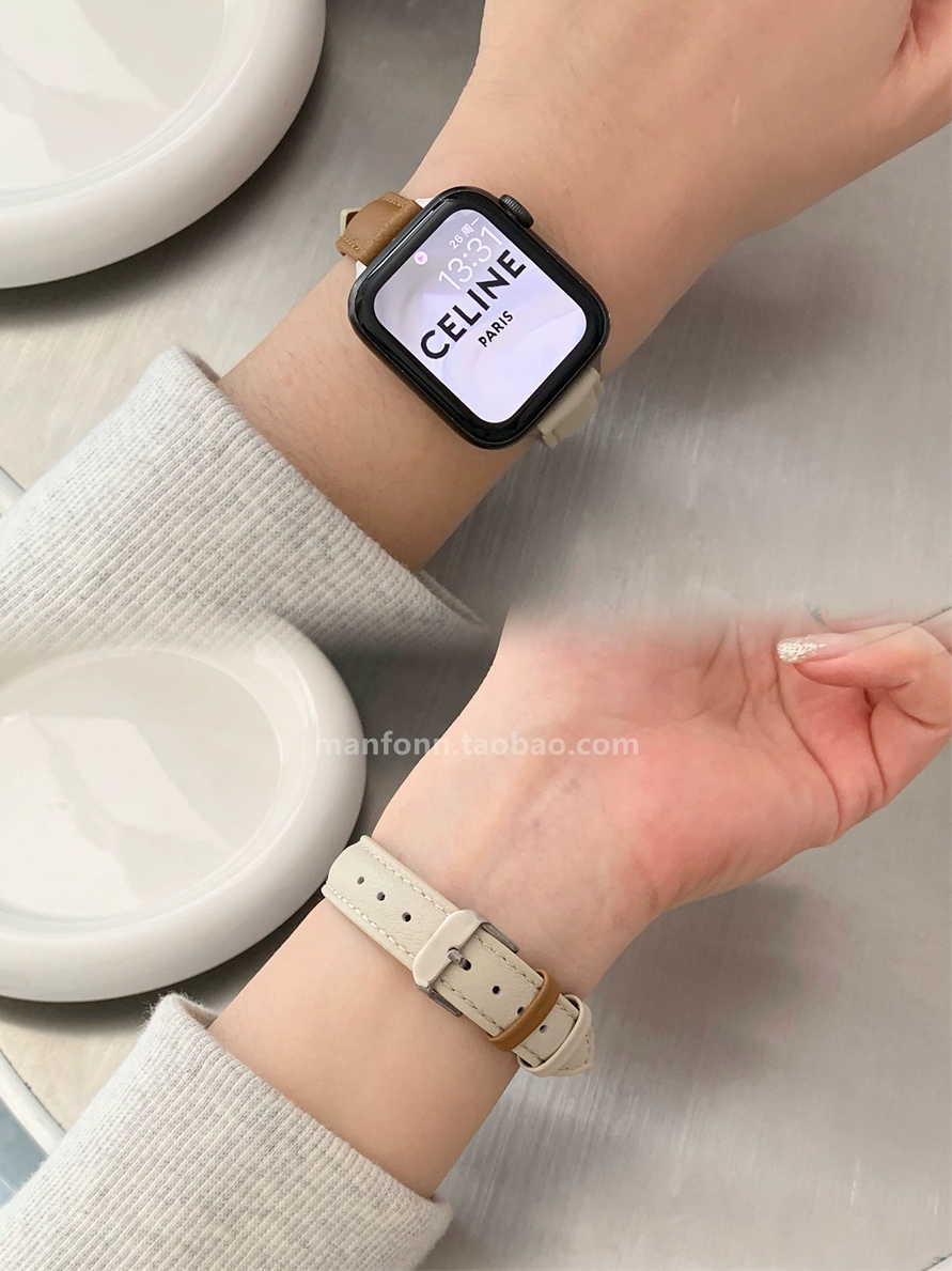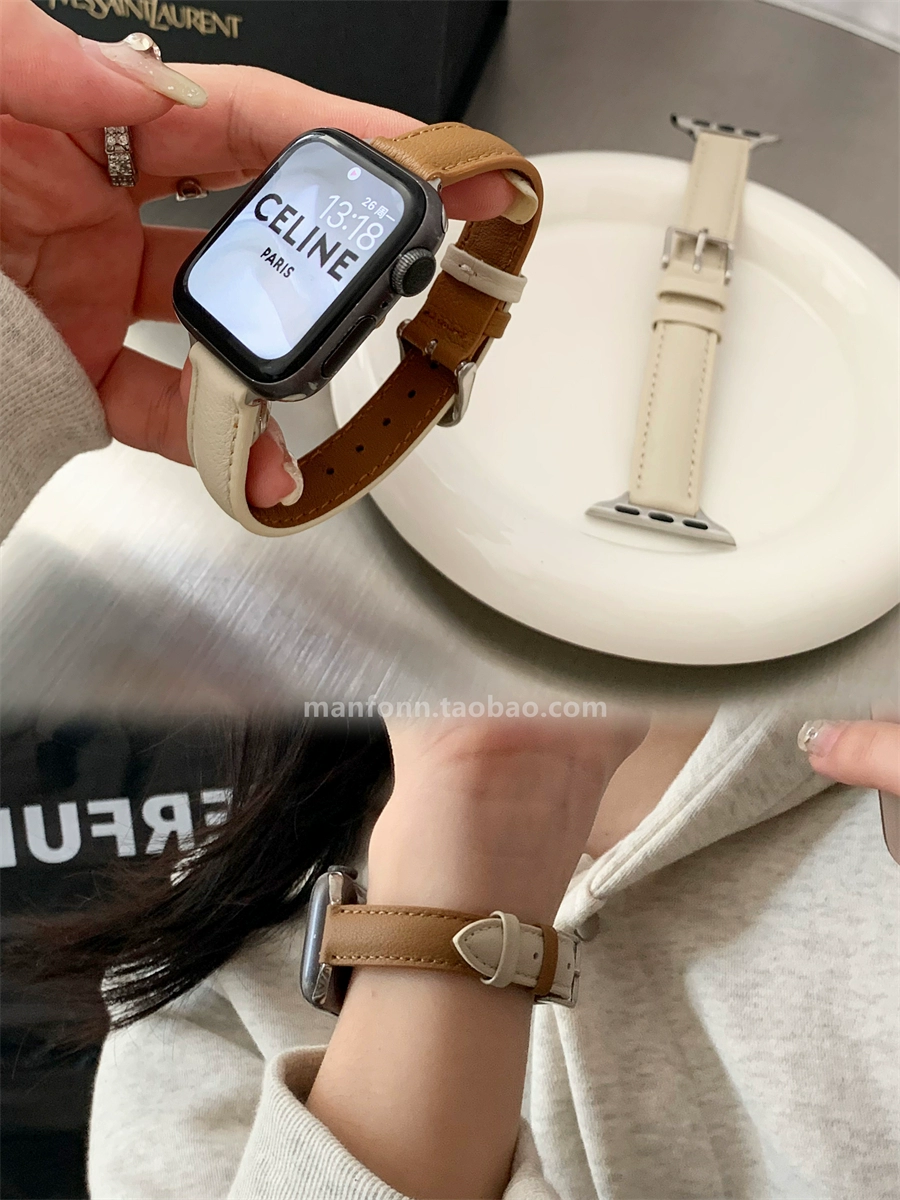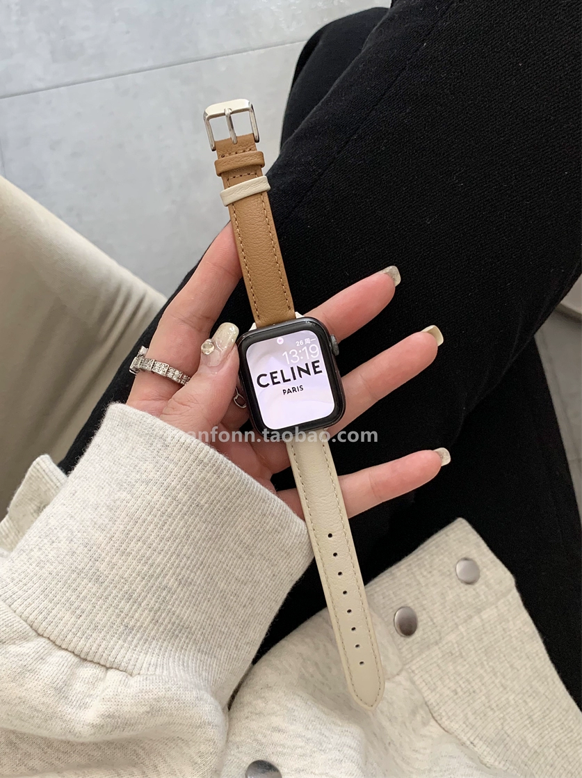 | nameOriginal | Fine color-blocked soft leather strap suitable for Apple watch strap applewatch89 generation SE lambskin 76 |