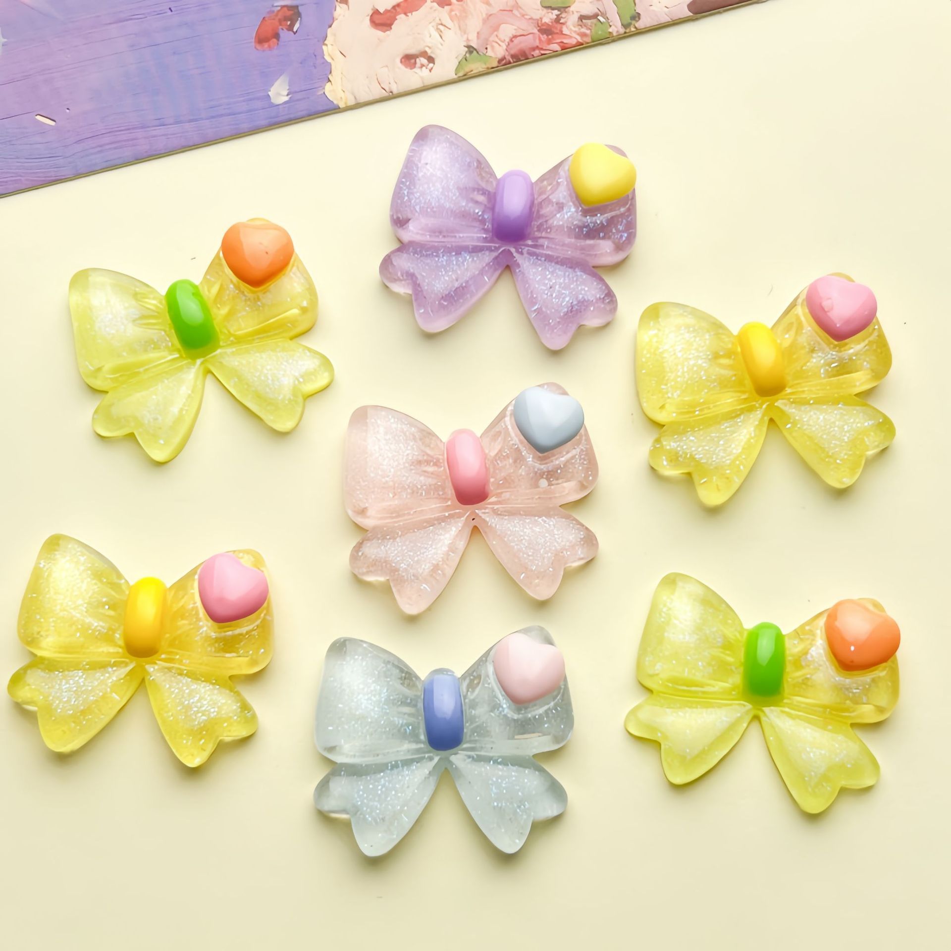 | nameOriginal | Fine Flash Love Bow Cartoon Bright Handmade DIY Cream Gel Hairpin Accessories Headline Mobile Phone Case Material Bag |