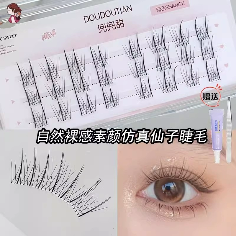 Fine-haired air eyelashes for moms! Little Devil False Eyelashes Natural Simulation Fairy Hair Girl Thin Stems Transparent Stems