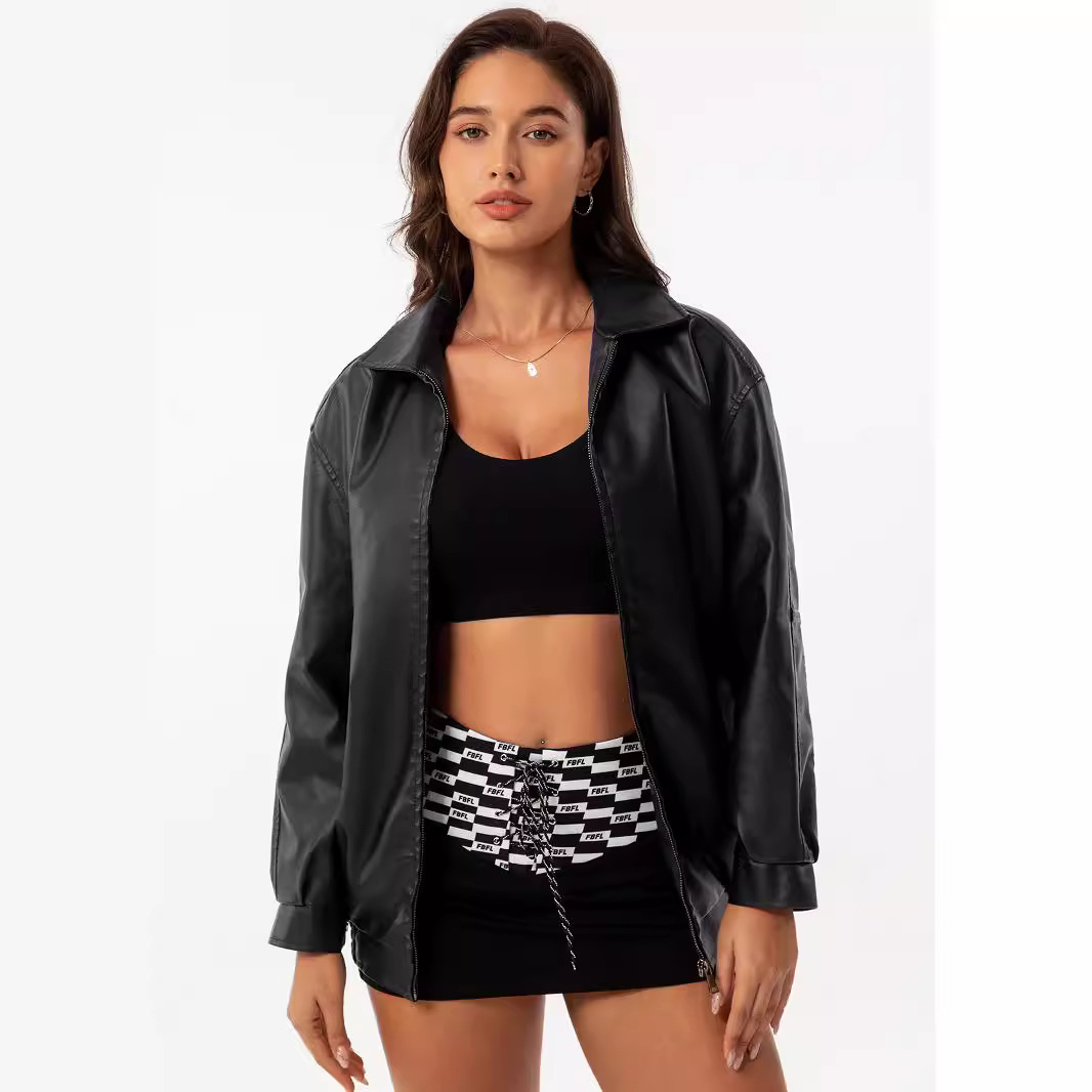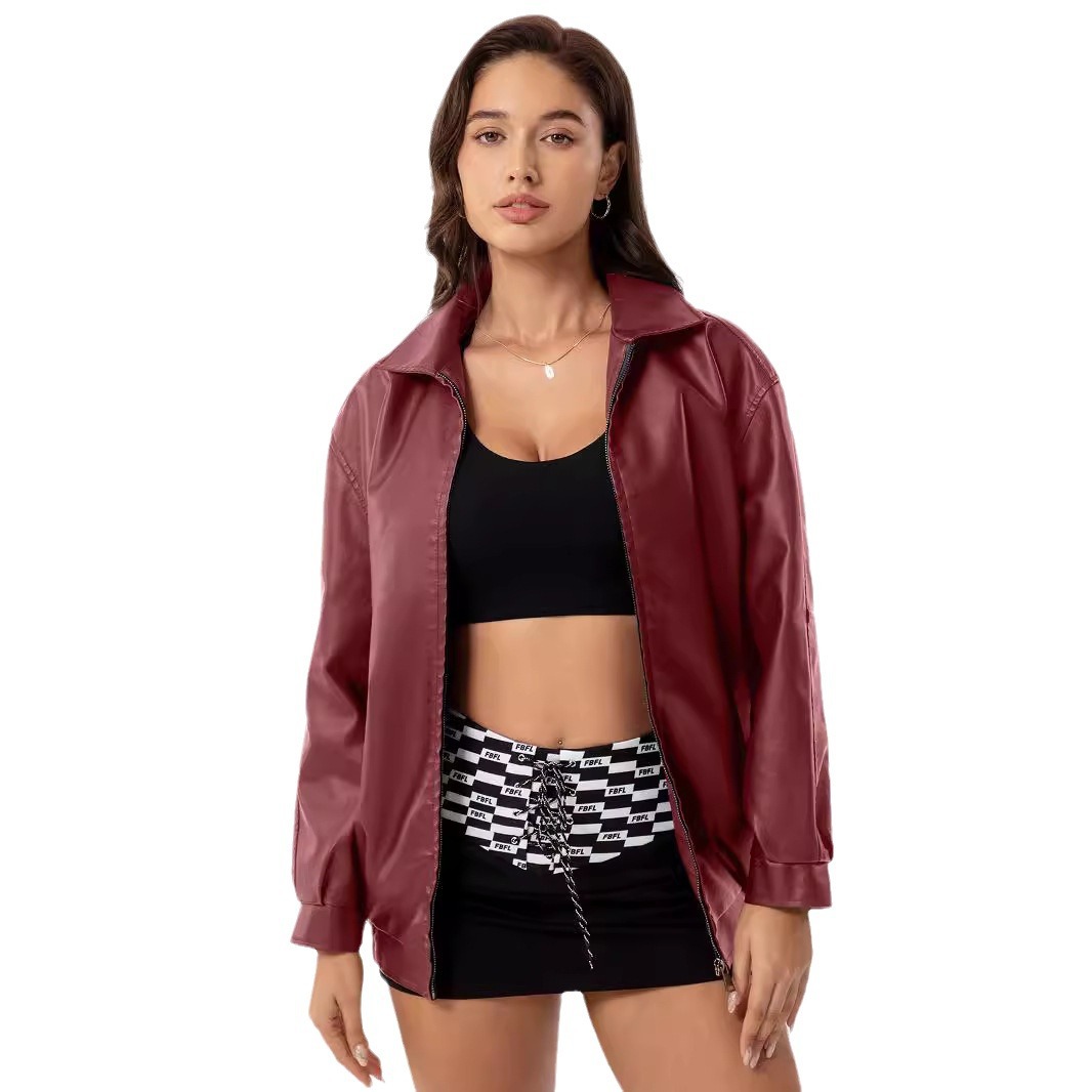 | nameOriginal | Fine leather jacket high-grade beautiful popular loose leather jacket sexy versatile spring and autumn leather jacket |