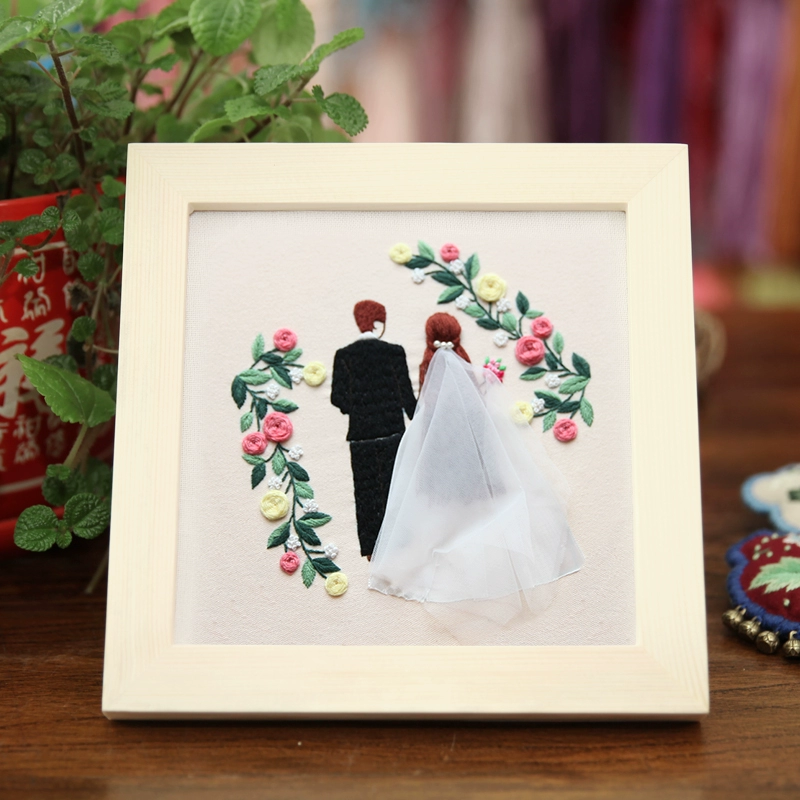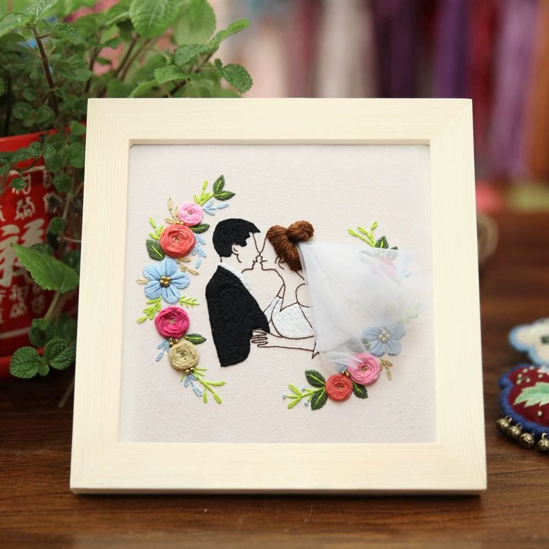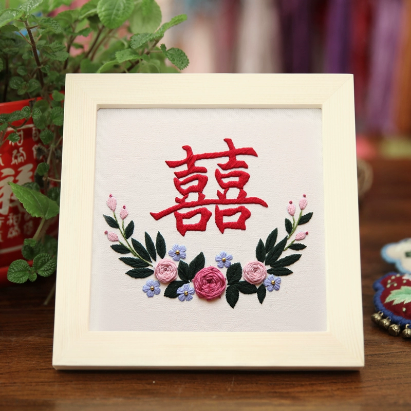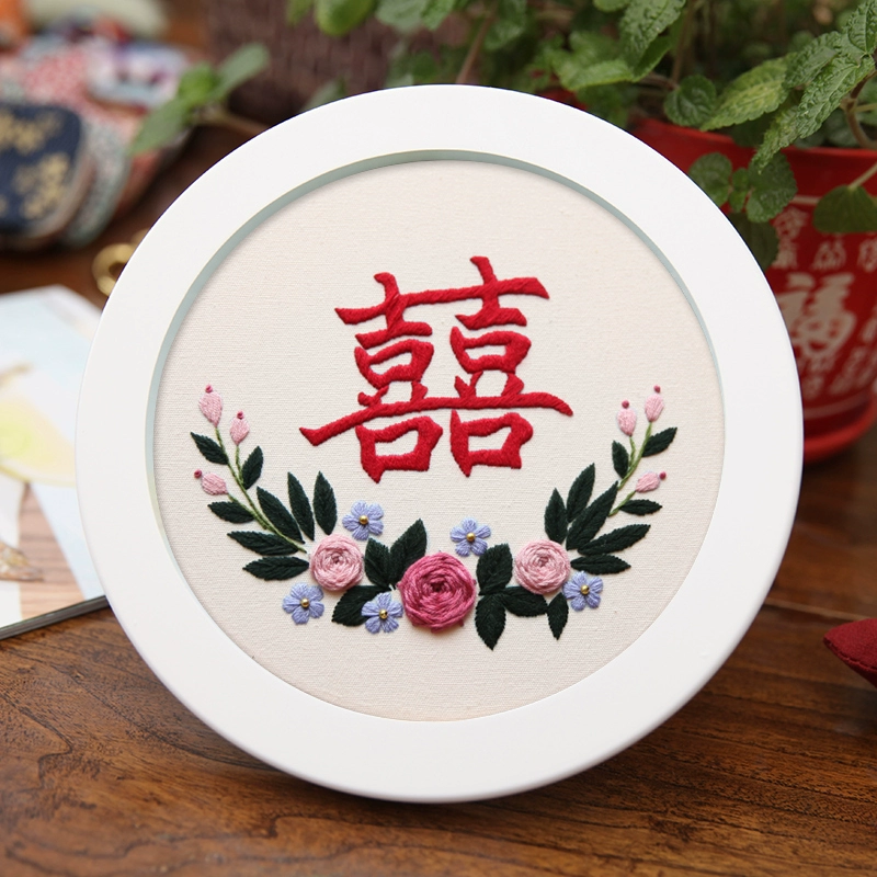 Finger Lu embroidery happy word diy hand embroidery material package wedding embroidery wedding dress three-dimensional embroidery couple