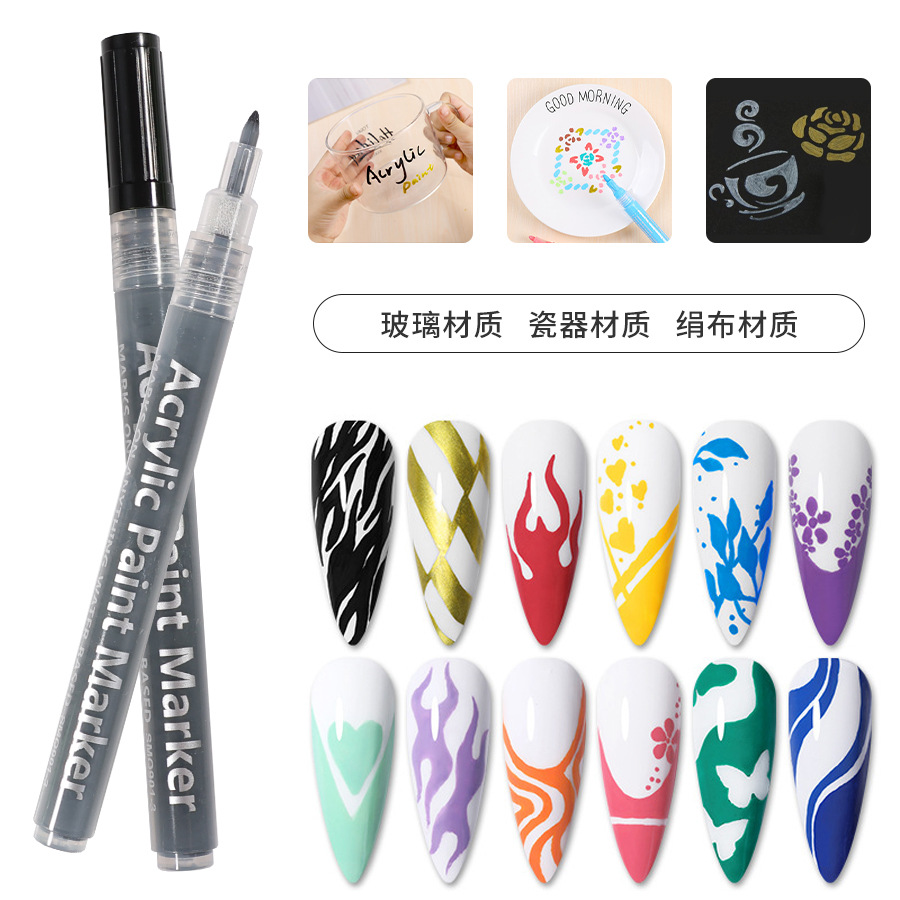 Finger princess nail art 0.7mm acrylic environmental protection marker nail art painted graffiti multi-color DIY nail brush wholesale