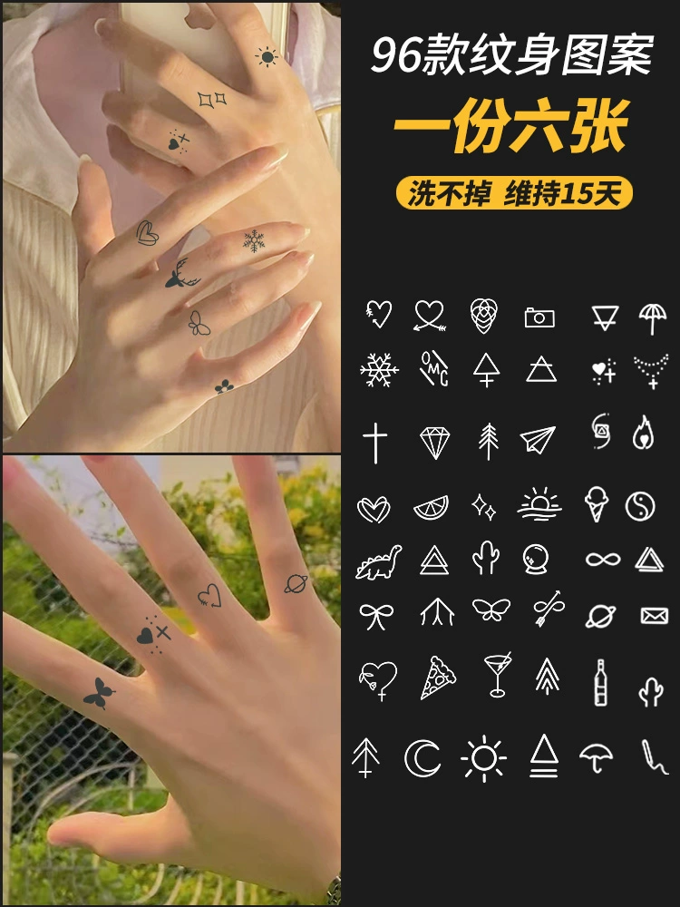 | nameOriginal | Finger small picture tattoo sticker waterproof female long-lasting simulation tattoo 2022 new herbal dyeing juice non-reflective |