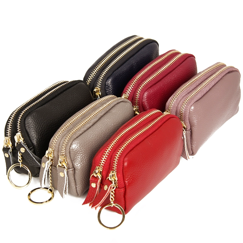 First-layer cowhide coin purse women's small handbag 2019 new European and American double-layer zipper clutch bag genuine leather middle-aged wallet