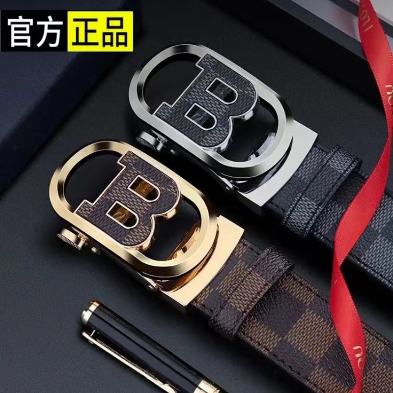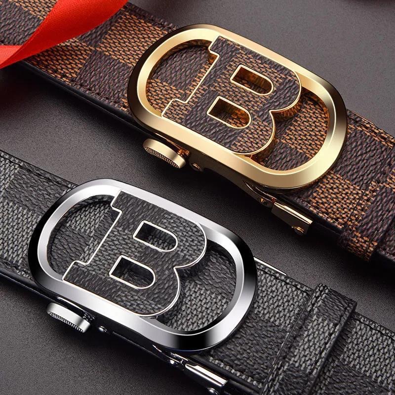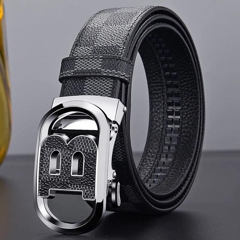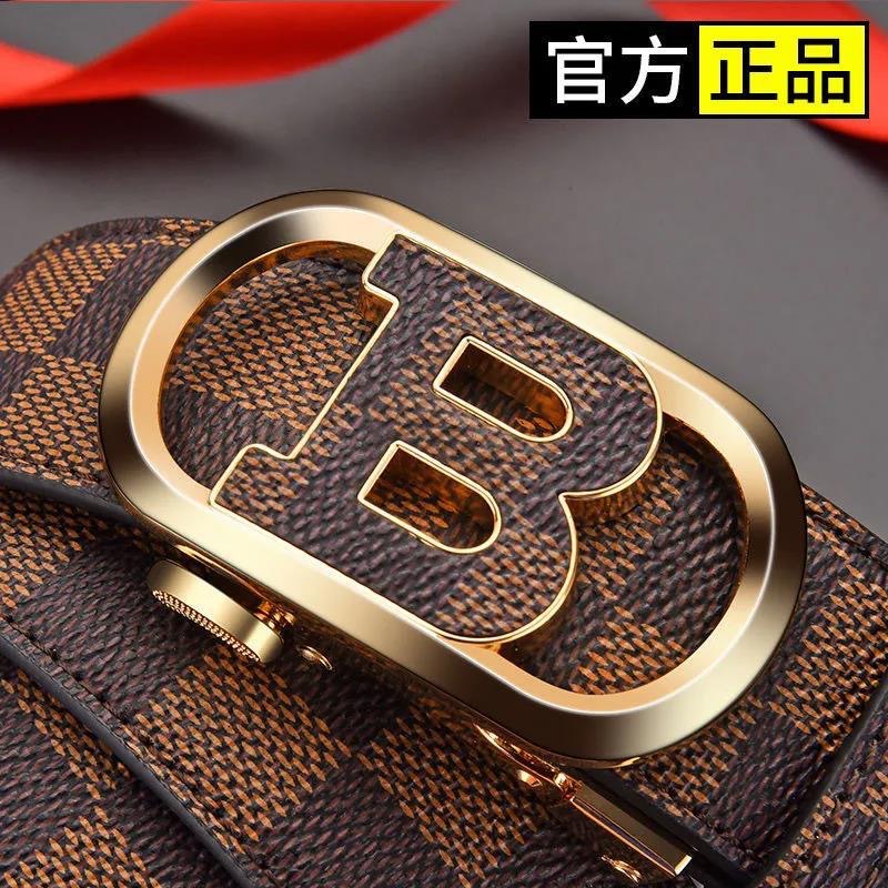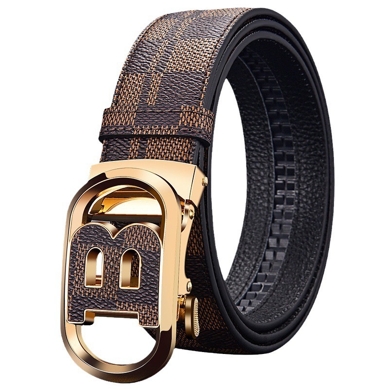 [first layer cowhide] Paul men’s belt genuine goods toothless automatic buckle plaid cowhide belt leisure business