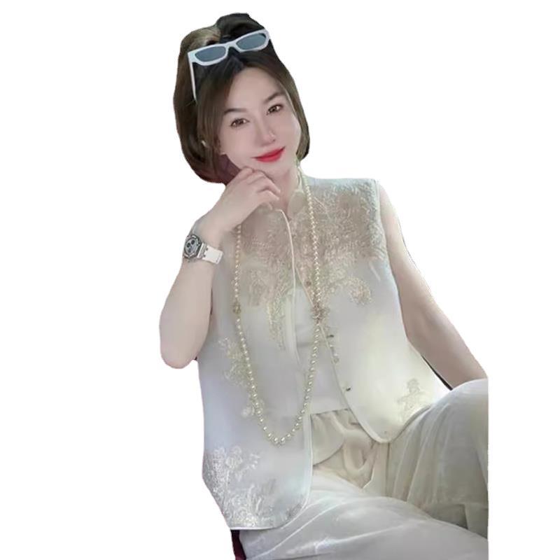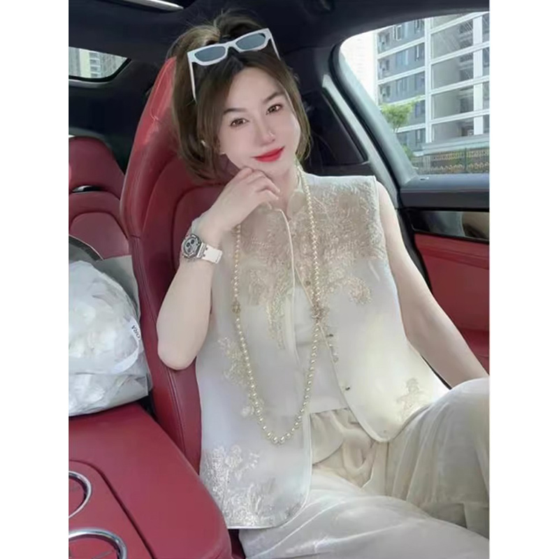 First-line brand tail single cut new Chinese Jacquard waistcoat women’s national style sleeveless vest top