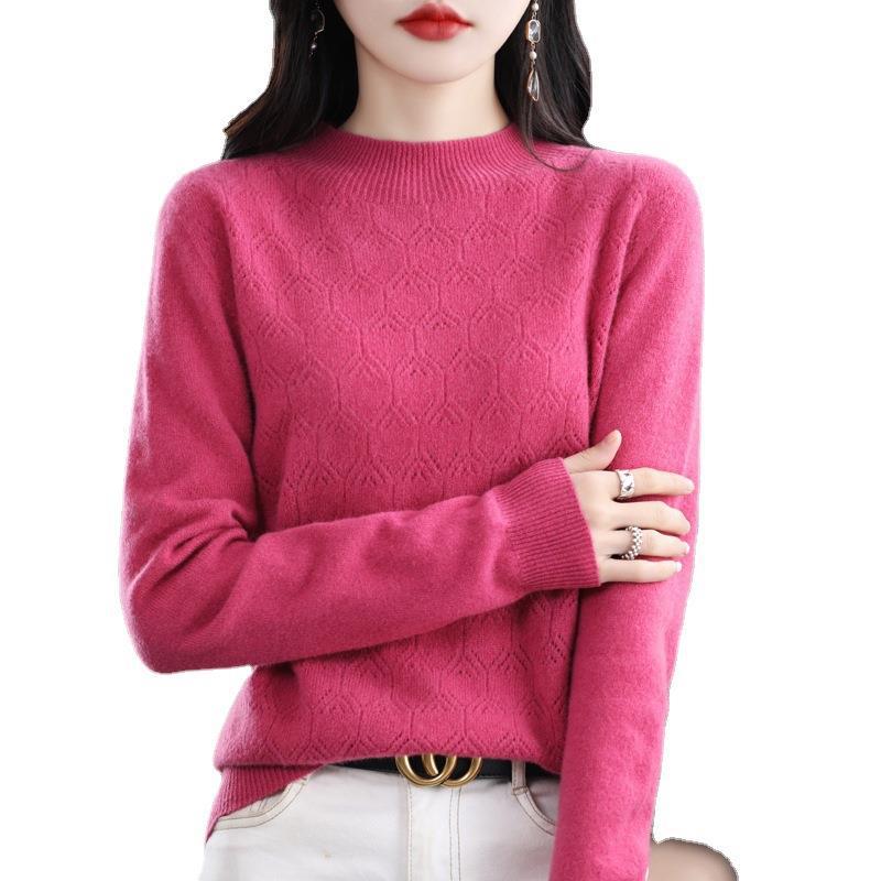 | nameOriginal | First-Line Readymade Garments Autumn and Winter 2023 New Wool Sweater Women's Half-turtleneck Hollow Loose Pullover Sweater Knitted Base Shirt |