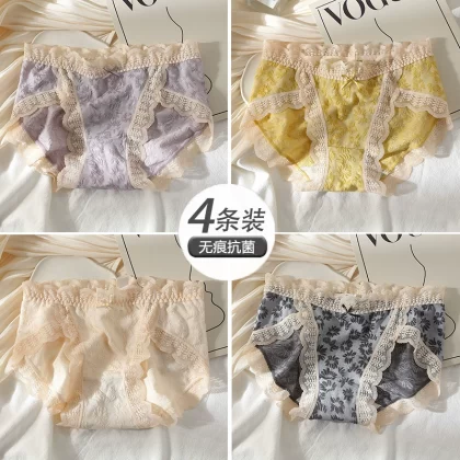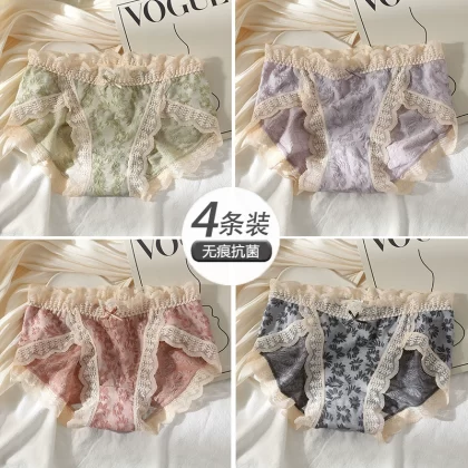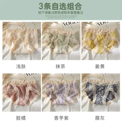 | nameOriginal | [First love] Underwear for girls, seamless pure cotton, antibacterial lace, bubble cotton, Japanese sweet mid-waist shorts |