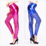 Fish Scale Pattern Hollow-out Carved Bronzing Hole Leggings Punk Style Leggings Stage Night Club Costume