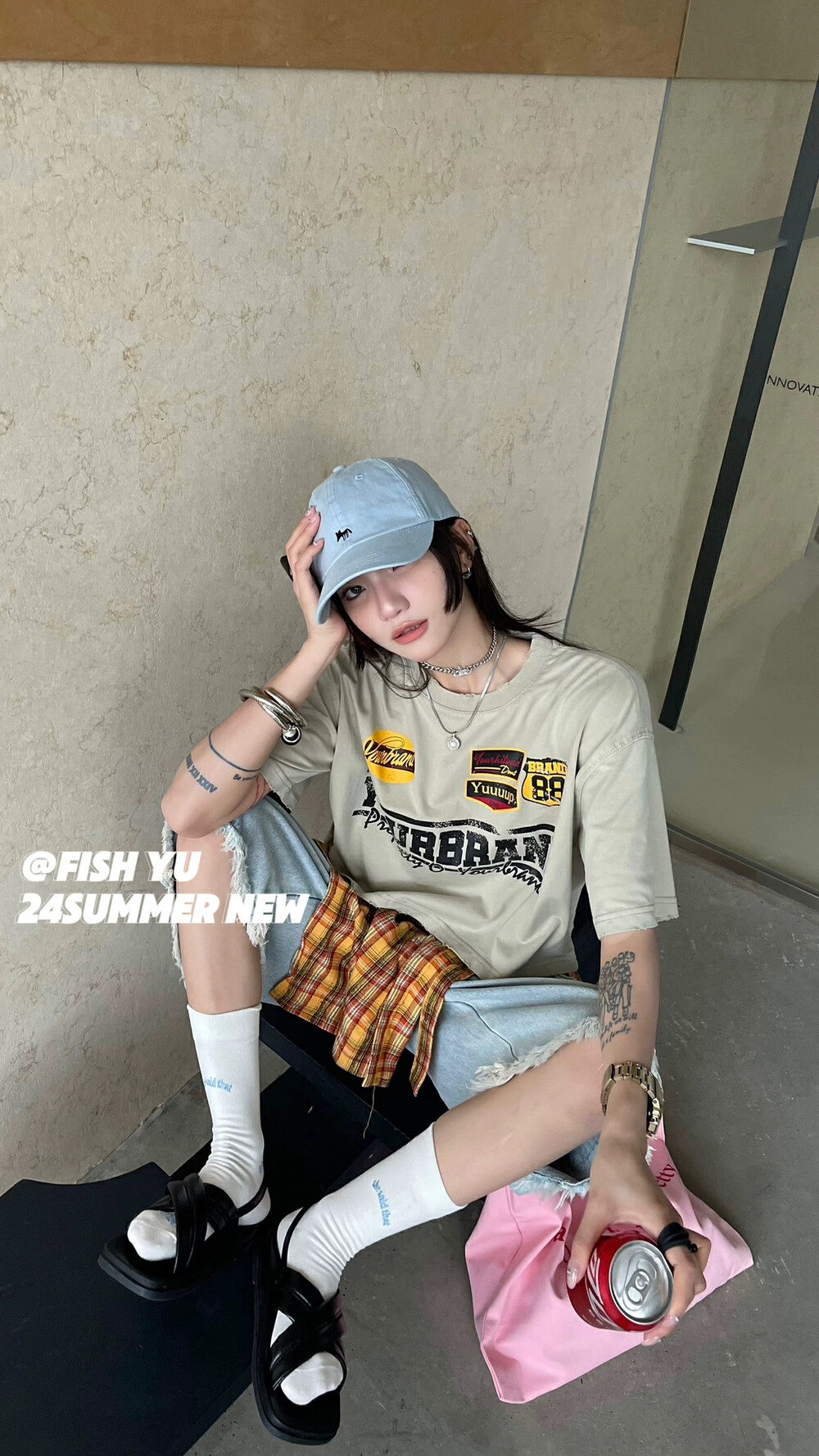 | nameOriginal | FISH YU new summer American retro letter print washed fried color heavy short short-sleeved T-shirt loose for women |