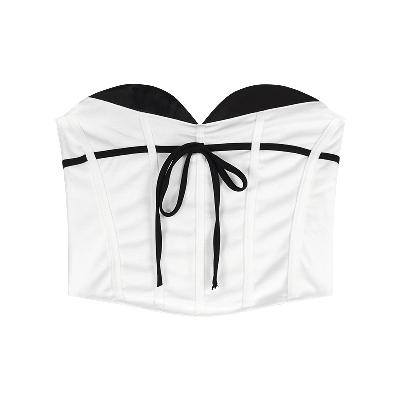 Fishbone tube top with contrasting color women's summer butt-covering bow