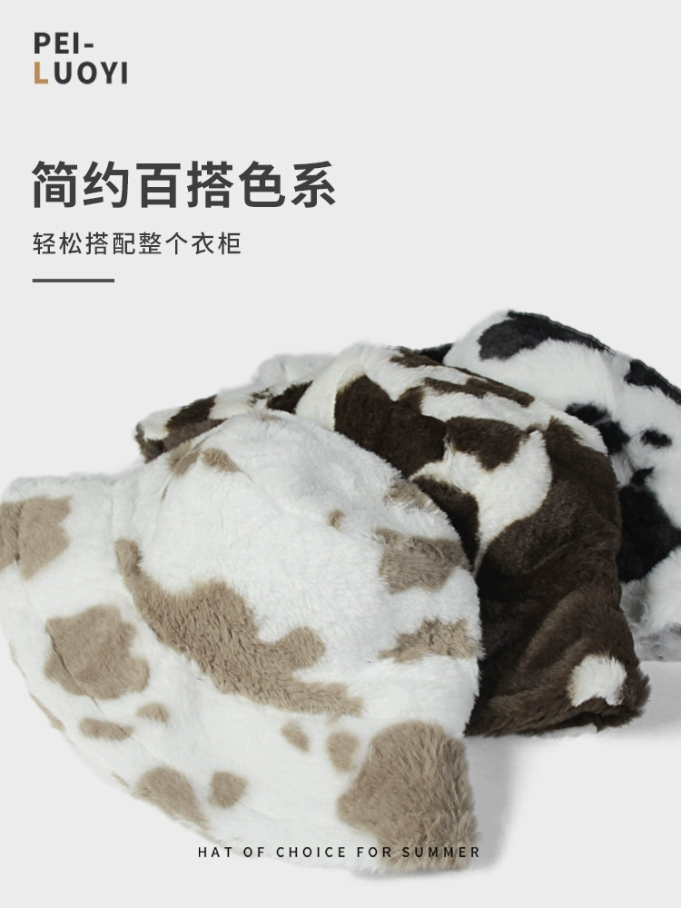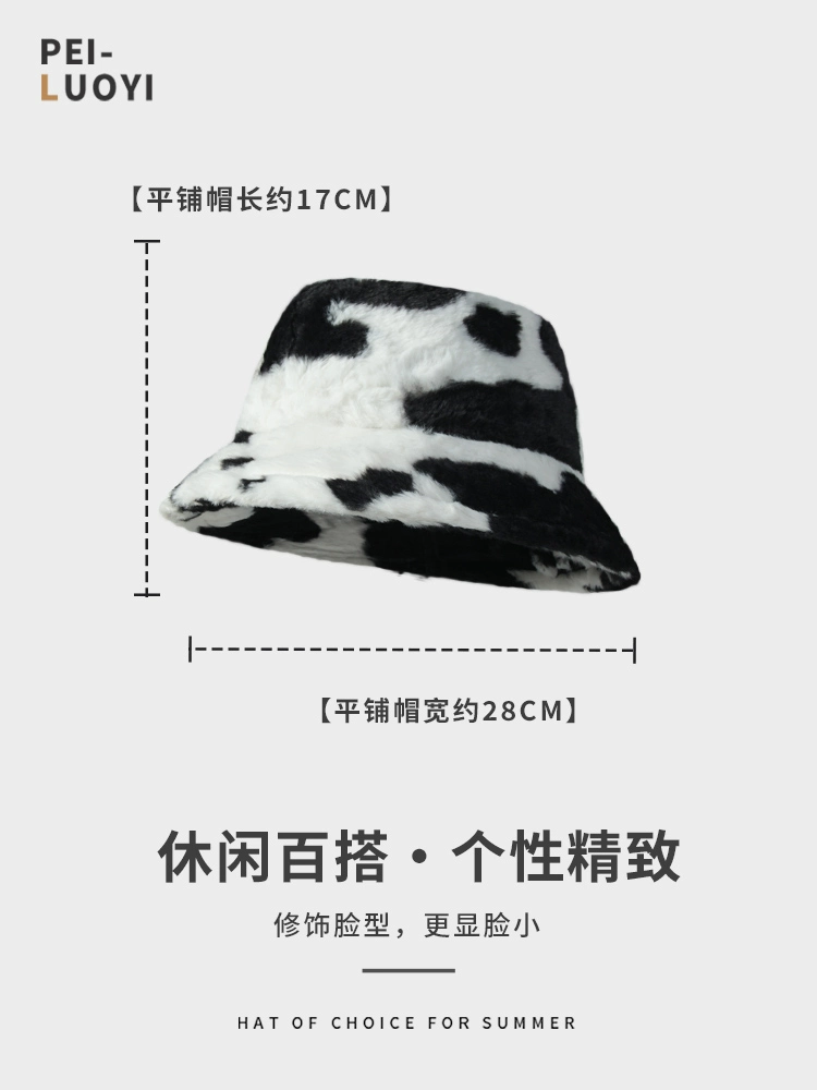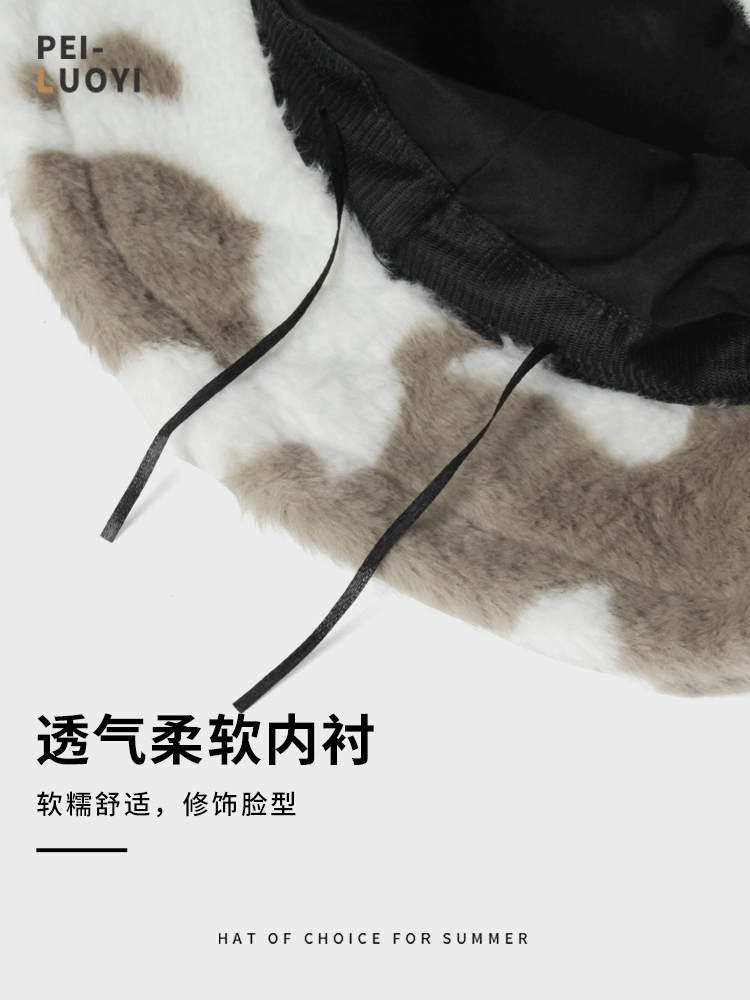 | nameOriginal | Fisherman Hat Women's Autumn and Winter Lamb Plush Ear Protection Basin Hat Korean Cute Cow Pattern Furry Hat Shows Small Face |