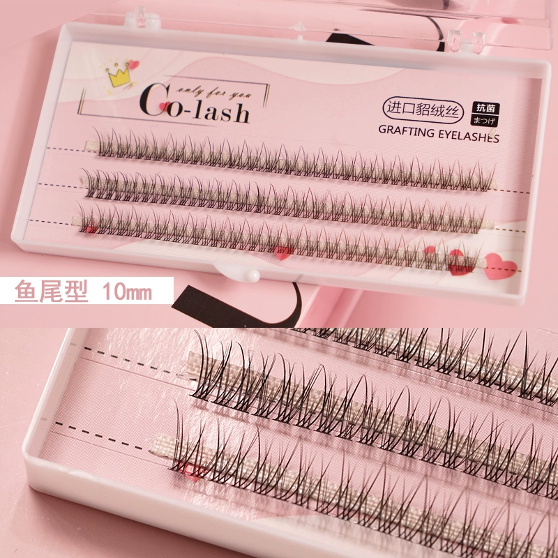 Fishtail false eyelashes, natural short segmented single cluster black stem grafted mixed fairy hair daily makeup artificial eyelashes