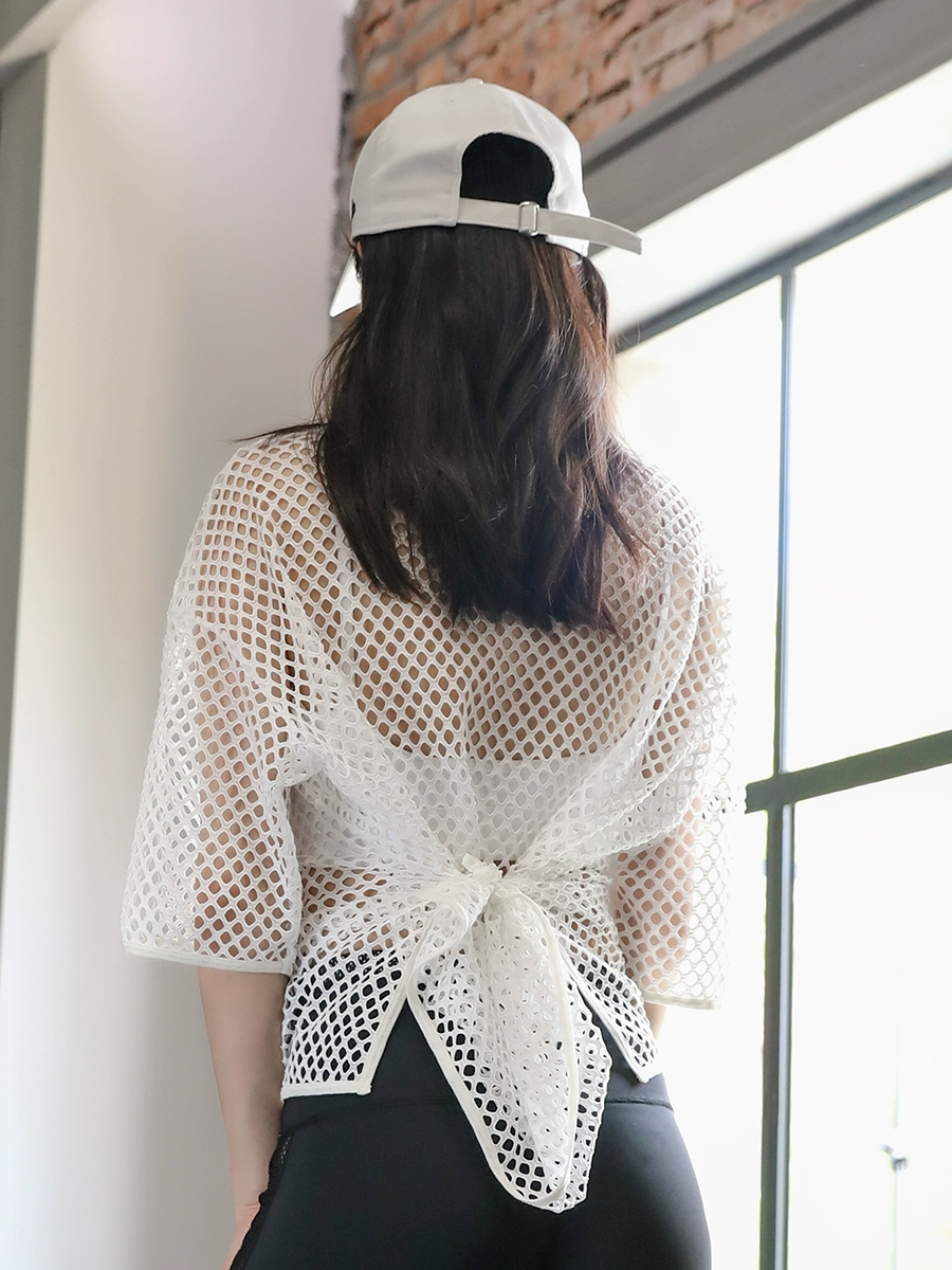 | nameOriginal | Fitness clothing, feminine, large mesh hollow blouse, large T-shirt, loose sports top, casual fishnet see-through ins |